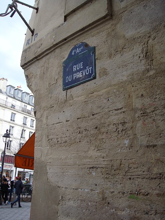 52 ... la rue du Prévôt (donnant sur la rue Saint-Antoine), nom donné en 1877 en souvenir du prévôt Hugues Aubriot, le bâtisseur de la Bastille. Vers 1300, c'était juste la rue Percée.
