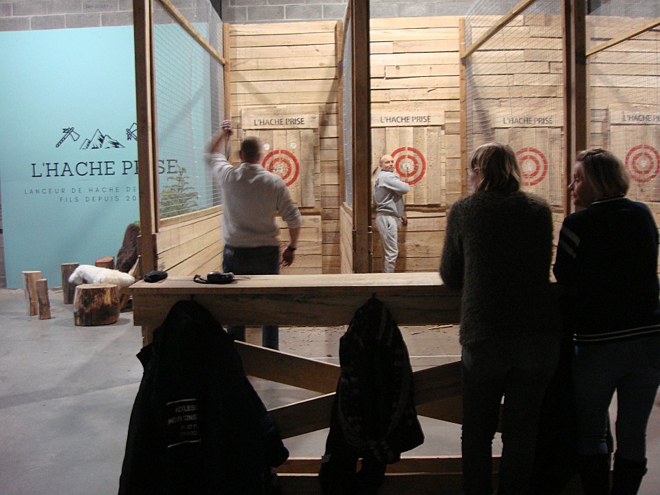 9 Juste à côté, le nouveau sport à la mode : le lancer de hache. |