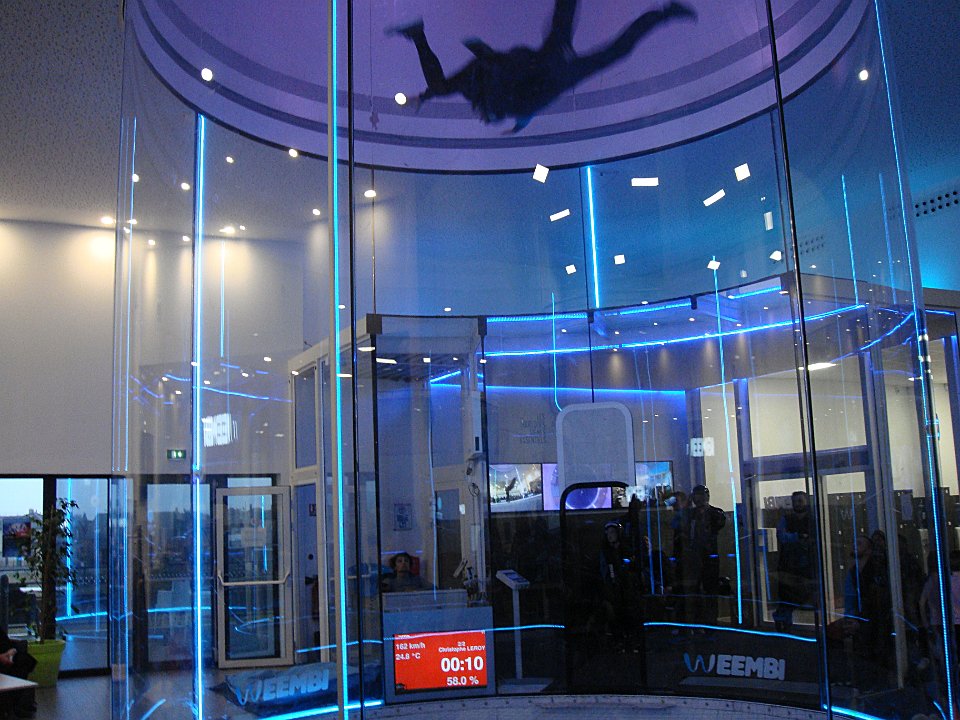 11 Et enfin le simulateur de chute libre de Weembi. 65 € les deux minutes, quand même, mais il y a des clients. |