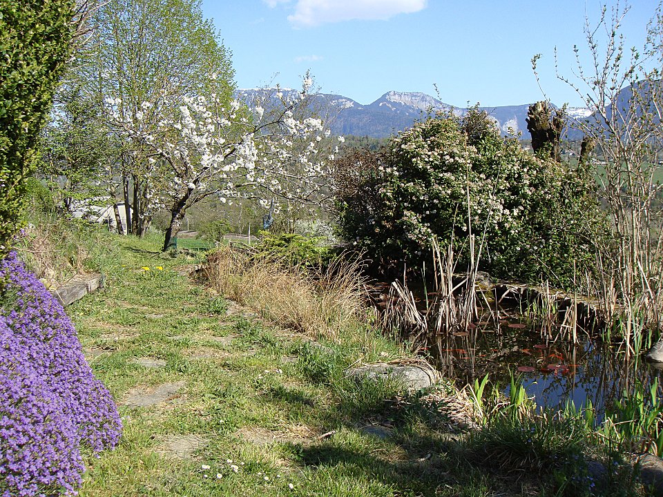 1 Le printemps, enfin ! À Groisy, aubriéta, cerisier et poissons cherchent le soleil. |