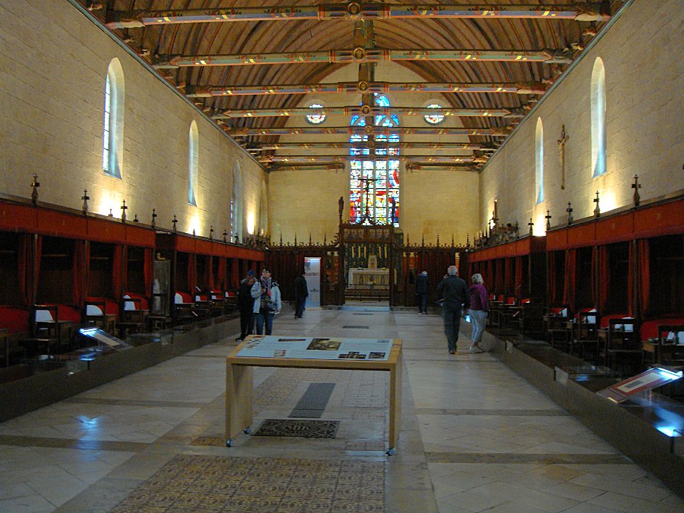 29 Dans la salle des Pôvres, murs et charpente du XVe siècle.