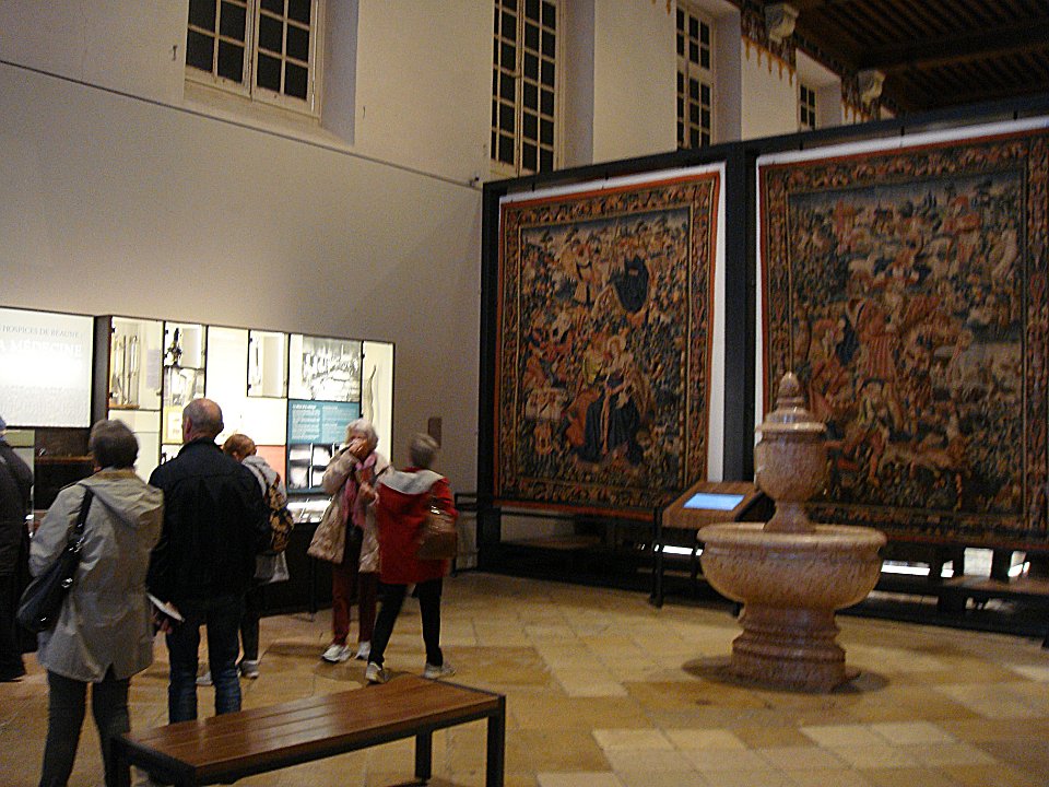 43 La salle expose des tapisseries du XVIe siècle et cette fontaine en marbre, seul reste de sa fonction première : l'accueil des pauvres et des malades.