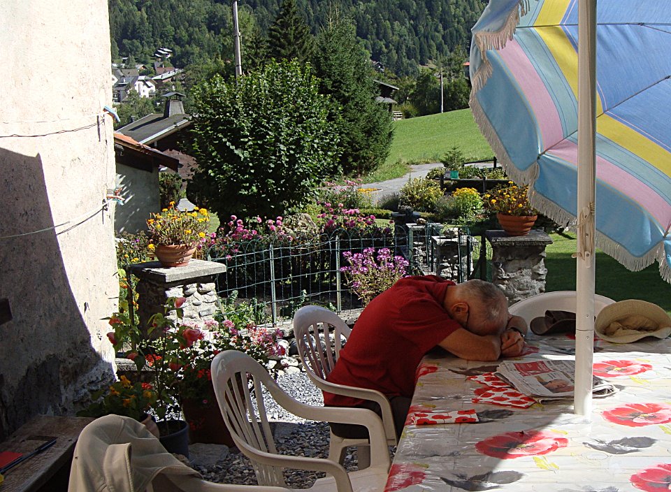 12 Depuis la chambre pour la sieste, à nouveau les Dômes de Miage, le glacier d'Armancette et l'Aiguille de la Bérangère. |