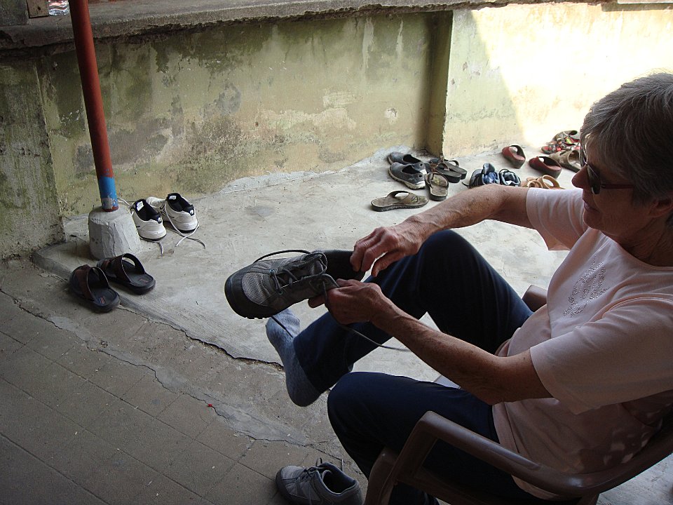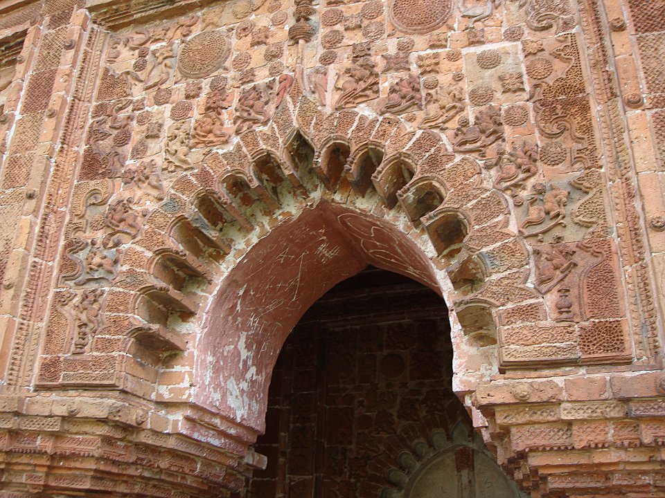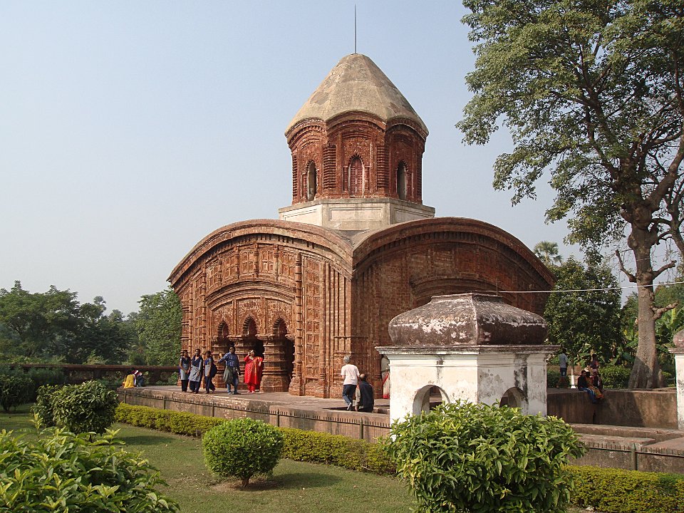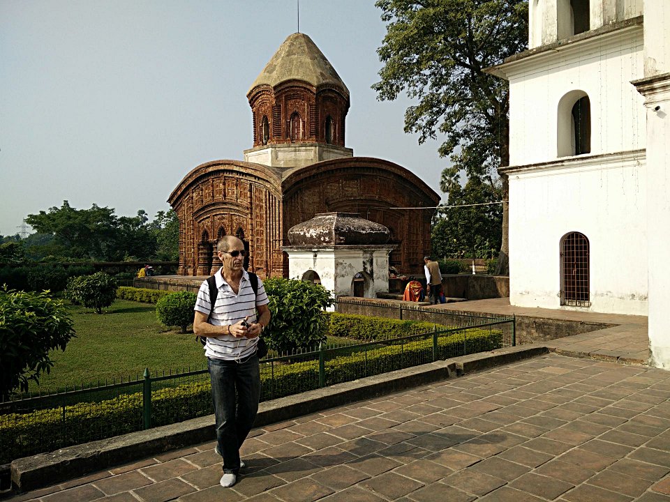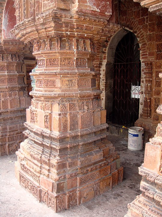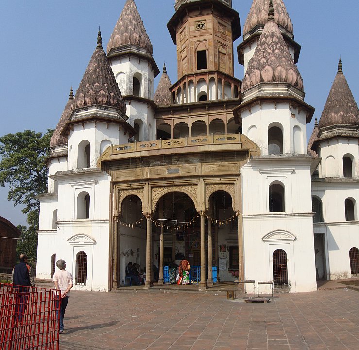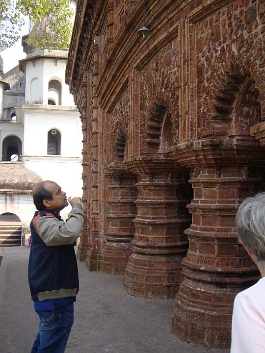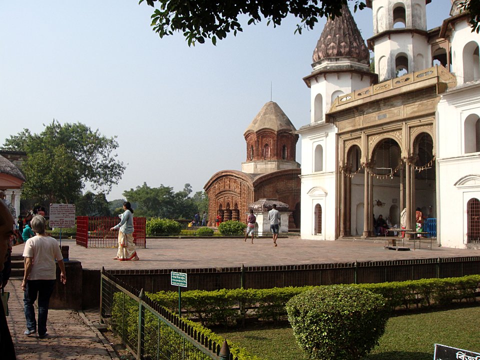 1 Non loin de Chandernagor ...2 ... à Bansberia, il faut se déchausser ...3 4 5 ... pour visiter les temples.6 Celui de la déesse Hangseshwari, un des avatars de Kali, construit au début du XIX ème siècle ...7 ... et surtout le temple Ananta Basudeba (vers 1788), en hommage à Krishna, ...8 ... presque entièrement en terre cuite ...9 ... finement ciselée.10 Sur les piliers sont présentés des extraits ... ChandernagorCalcutta 4 (Debanjan, Brototi) et retour