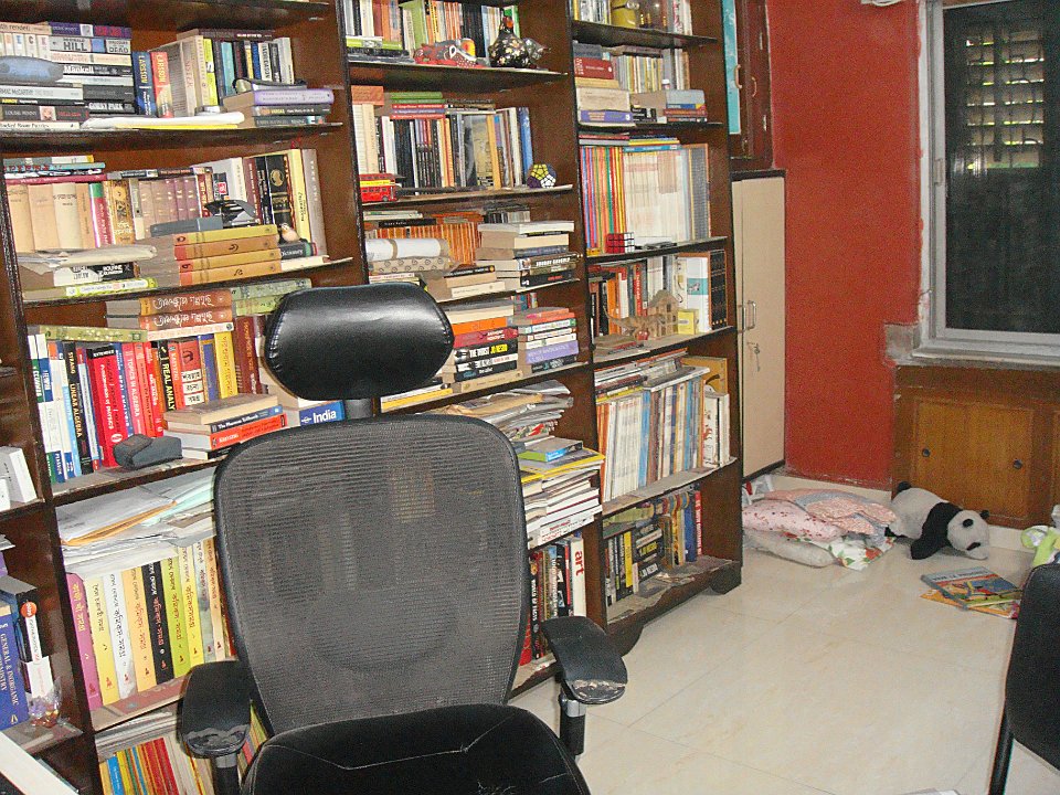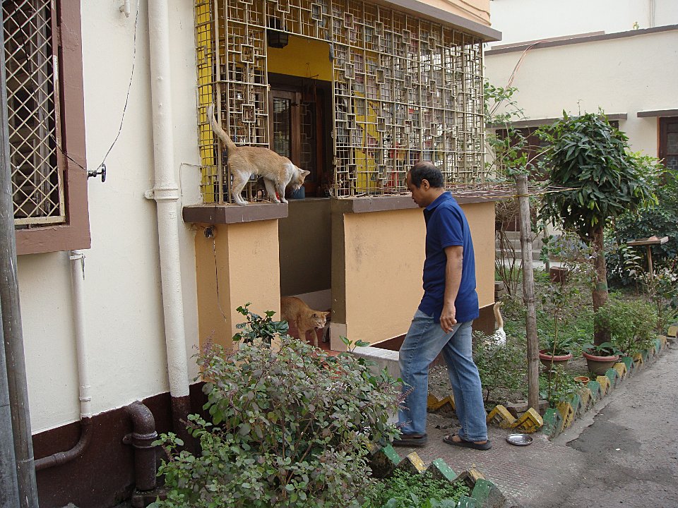 1 L'hôtel Gallery Inn.2 Un petit aperçu de l'ambiance sonore dans la rue.3 Heureusement la chambre est beaucoup plus silencieuse. Pour le petit déjeûner ...4 ... le gérant fait de son mieux avec les moyens du bord : œuf dur, toasts et sucre en poudre.5 Vue imprenable ...6 ... sur le balcon d'en face.7 À 10 mn à pied, chez Rupa et Amit, les chats sont rois.8 L'appartement est dans une cour très calme.9 Il y a même des BD en français ! Mais surtout des bouquins de maths.10 Rupa (en fait Ruprekha : Ligne de beauté ) nous emmène visiter ... DépartCalcutta 1 (Debanjan, Brototi)