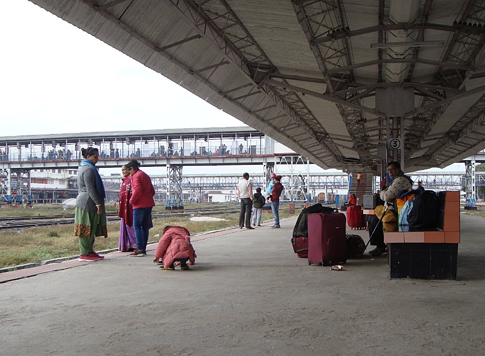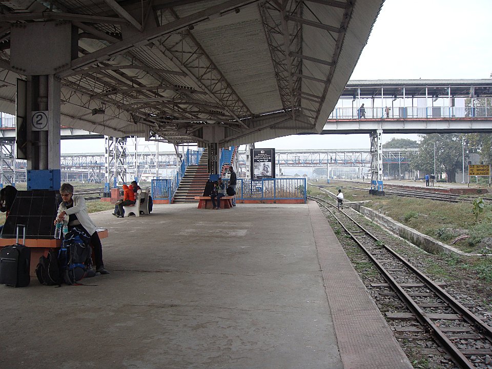 1 Départ de Guwahati ...2 ... pour un court vol à destination de Bagdogra-Siliguri . Là, taxi pour New Jailpaiguri, à une vingtaine de kilomètres ...3 ... pour passer la nuit ...4 ... avec vue sur la pub, mais surtout être prêt de la station de train.5 Le lendemain, attente de l' « Himalayan train ».6 En retard. Notez la voie de faible écartement.7 Très en retard.8 Ah, enfin, 1h 30 après l'heure officielle !9 Bon, il faut encore changer la locomotive.10 Kaziranga (retour)Darjeeling (ville)