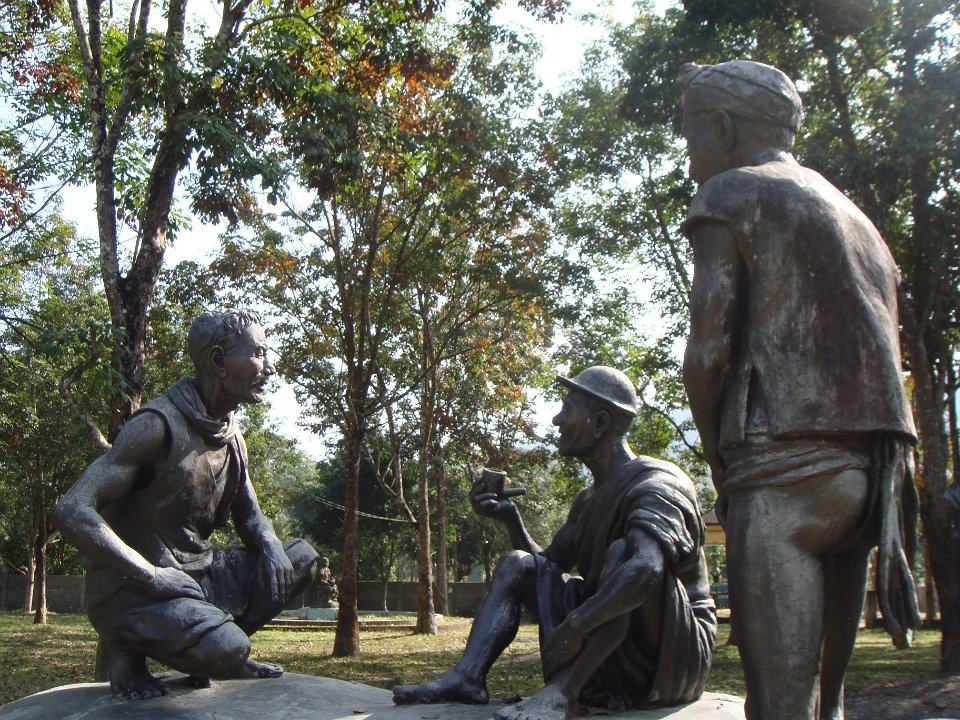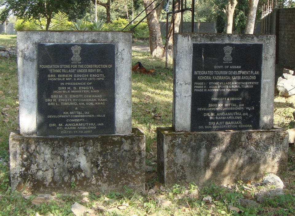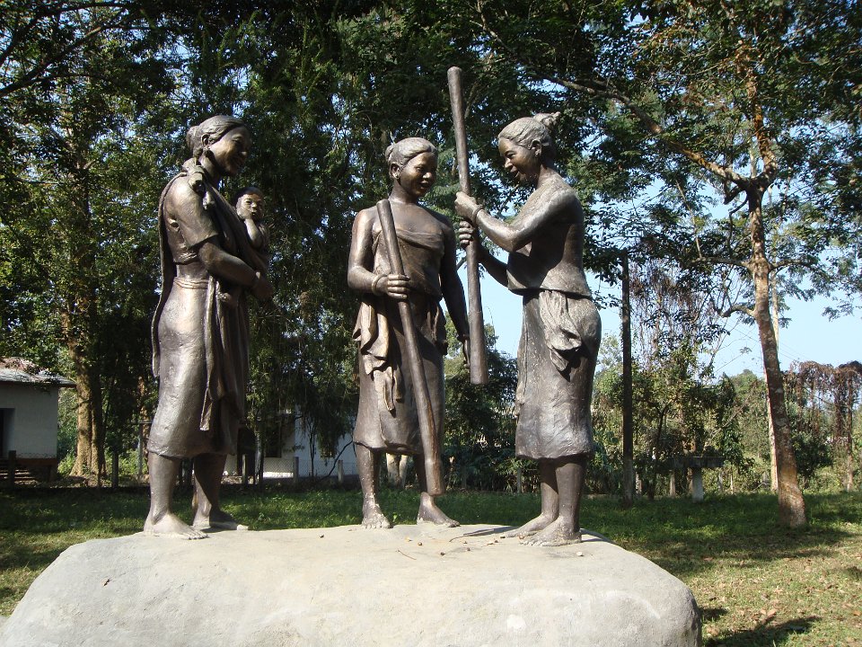 1 Le village ethnique de Kohora ...2 ... non loin des rochers et de l'étang vu auparavant ...3 4 ... présente 12 types d'habitation du district de Karbi Anglong, ...5 ... ainsi que des groupes statuaires des Rengma, Karbi, Kuki, Dimasa, Adivasi, ...6 ...Mantai, Khasia, Nepali, Tiwa, Bodo, et Garo.7 8 9 10 Kaziranga (rochers, thé)Kaziranga (retour)