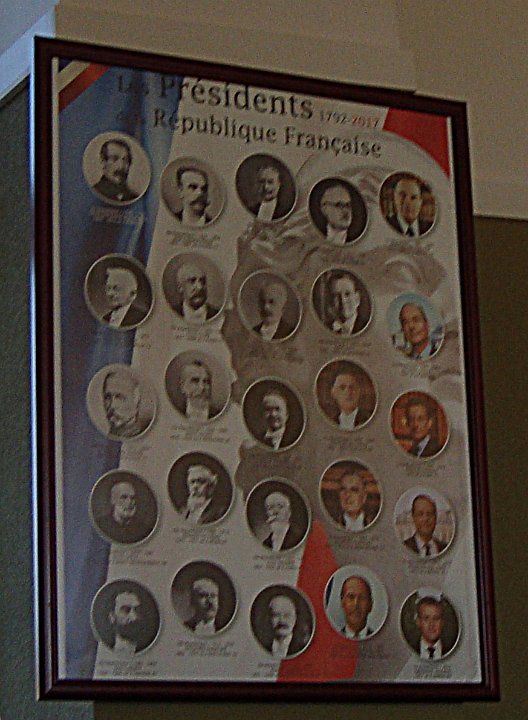 6 Au mur, les présidents de la République, depuis 1848 (Louis-Napoléon Bonaparte). Le tableau est rempli, il va falloir en mettre bientôt un autre ! |