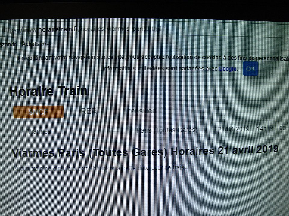 1 Léger problème pour revenir de Viarmes sur Paris. Encore pire qu'à l'aller. Du coup le tonton va nous amener à la gare de Goussainville, prendre le RER D, ce sera toujours mieux.
