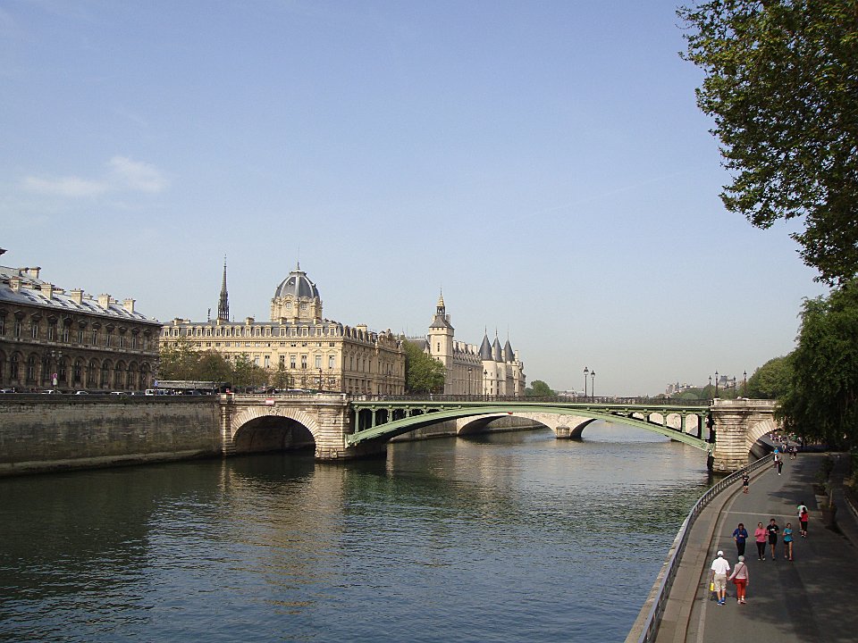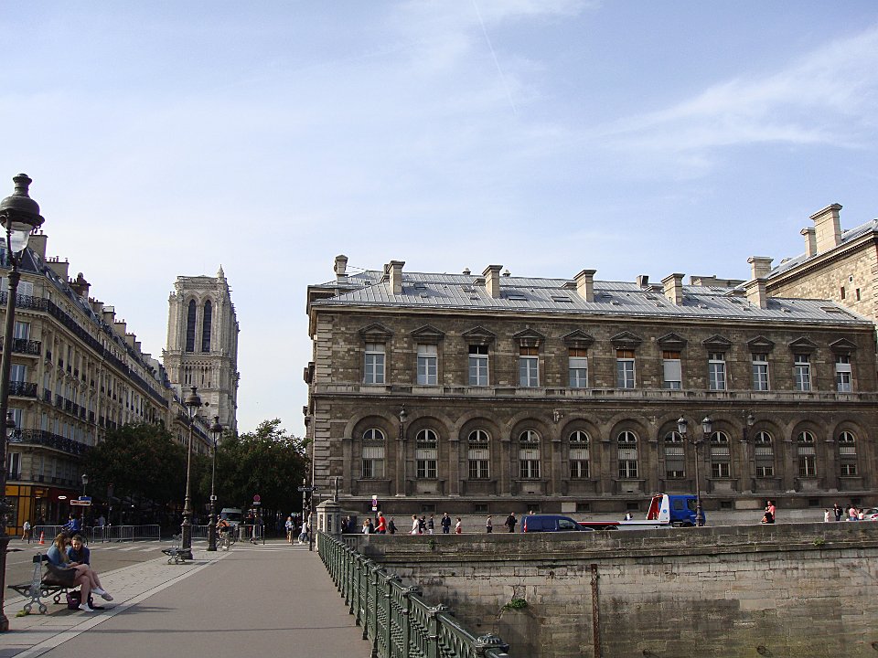 2 Et, ainsi, nous retrouvons Paris, la Seine et ses ponts (pont de Sully et, après le palais de justice, celui de la Tournelle). Au loin, la préfecture et la Conciergerie.