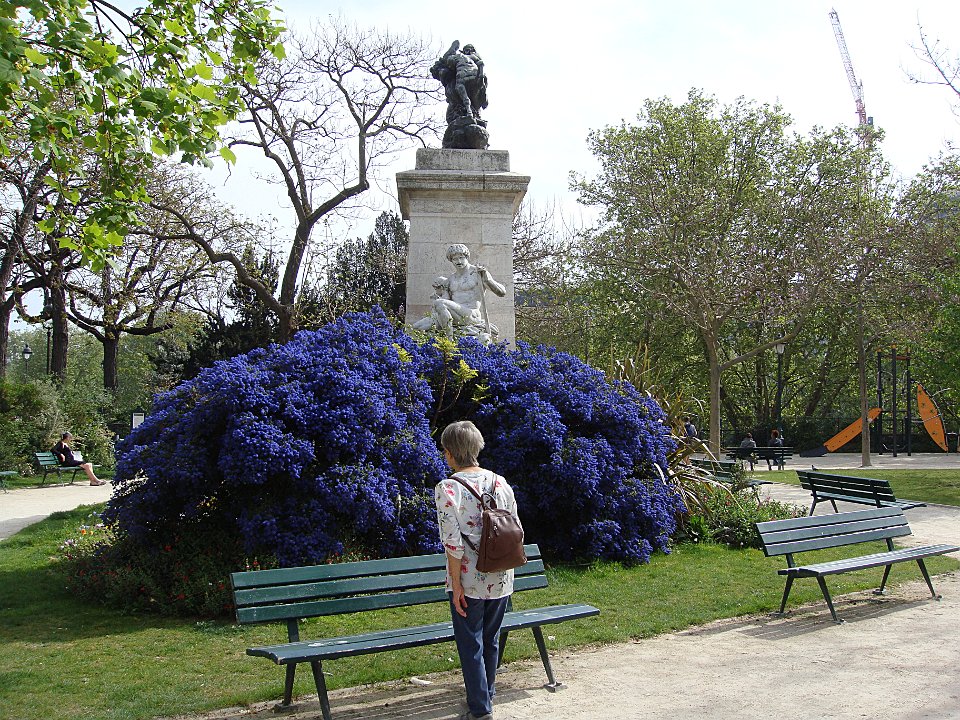 17 Par le pont de Sully on traverse la pointe de l'île Saint-Louis, pour arriver au square Barye, où l'on peut admirer cette magnifique Ceanothe (problement la variété Julia Phelps), fort prisée des abeilles.
