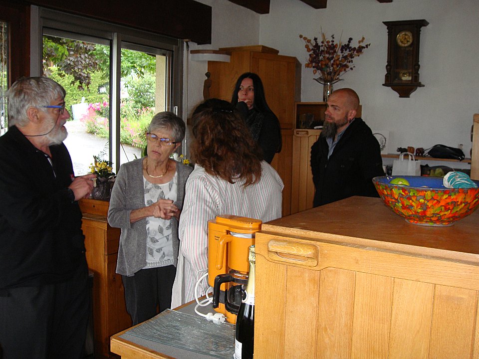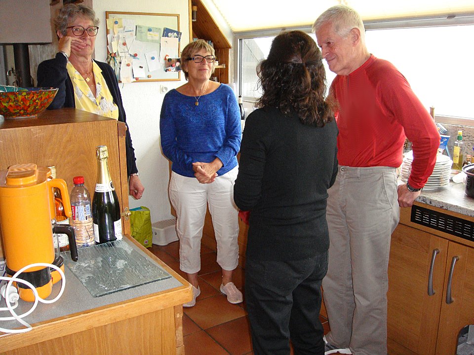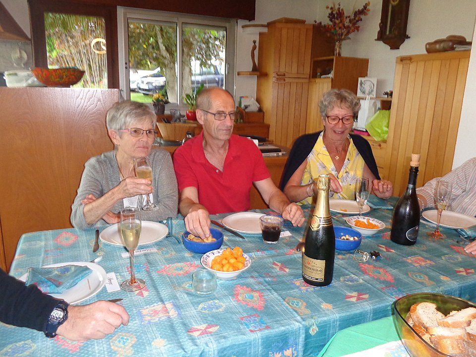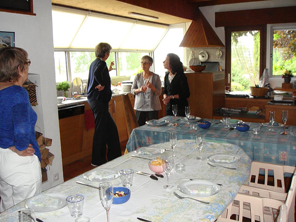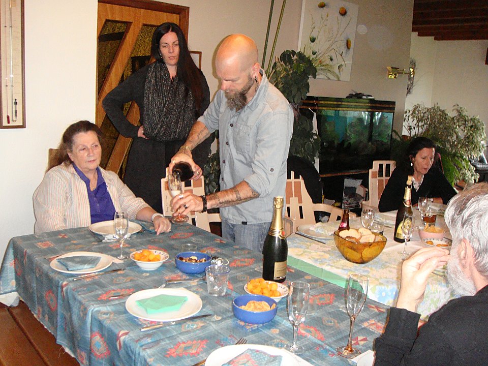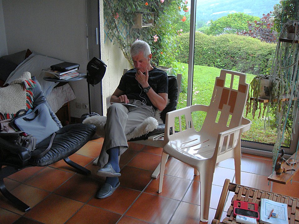 1 Chauffage au mois de juin !2 Au moins cela fait l'affaire de Minnie.3 Pourtant le jardin a bien fleuri ...4 ... et les poissons du bassin sont vifs et affamés.5 En attendant les autres invités, Pierre travaille son espagnol.6 Josiane est arrivée ...7 ... et ça papote dur.8 Tout le monde est là, maintenant ...9 ... et Vivien peut servir l'apéro.10 Roc de ChèreDragons