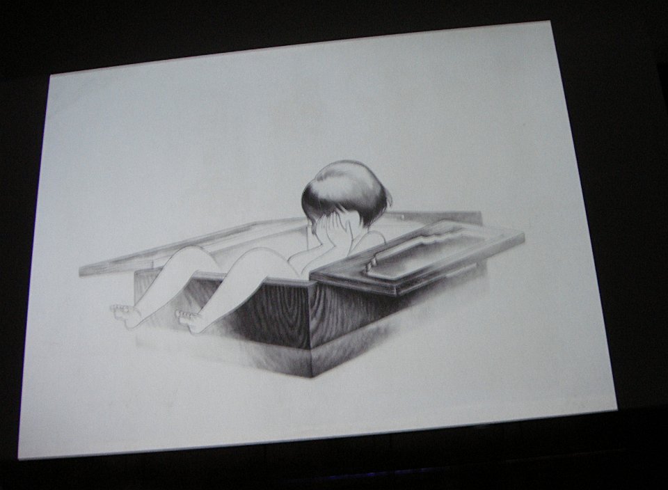 1 La plupart des invités partis, lundi pluvieux ...2 ... les pauvres roses pendouillent ...3 ... tout est détrempé, mais cela n'empêche pas ...4 ... les plus courageuses d'aller au festival d'animation d'Annecy,...5 .... enfin, au moins aux expositions dans l'ancien haras.6 D'abord quelques très courts films japonais, ...7 ... assez ésotériques.8 9 10 Puis, dans un autre bâtiment, ... Anniversaire