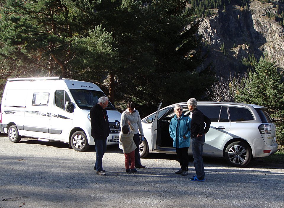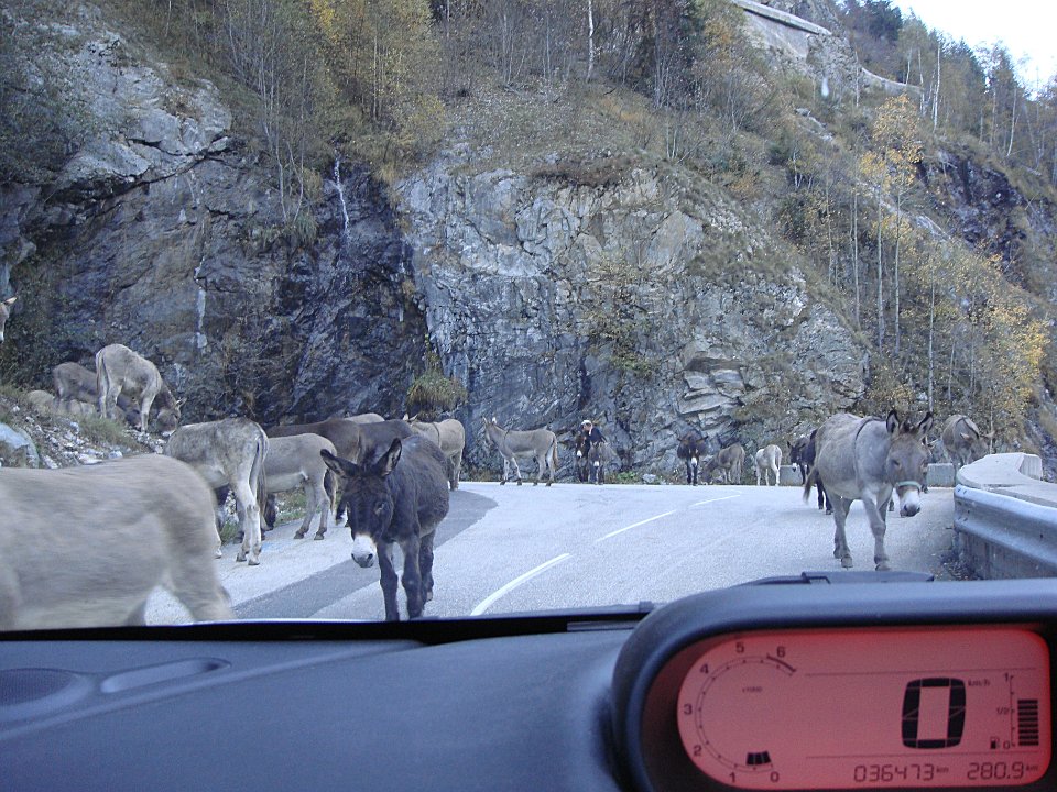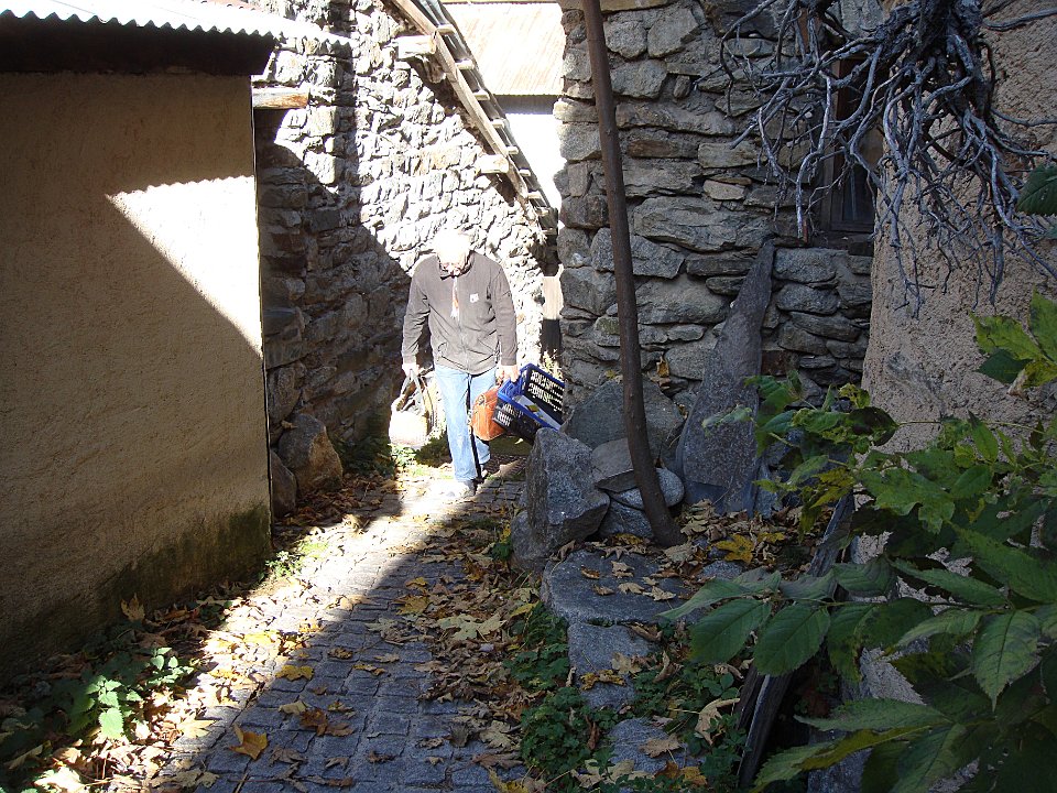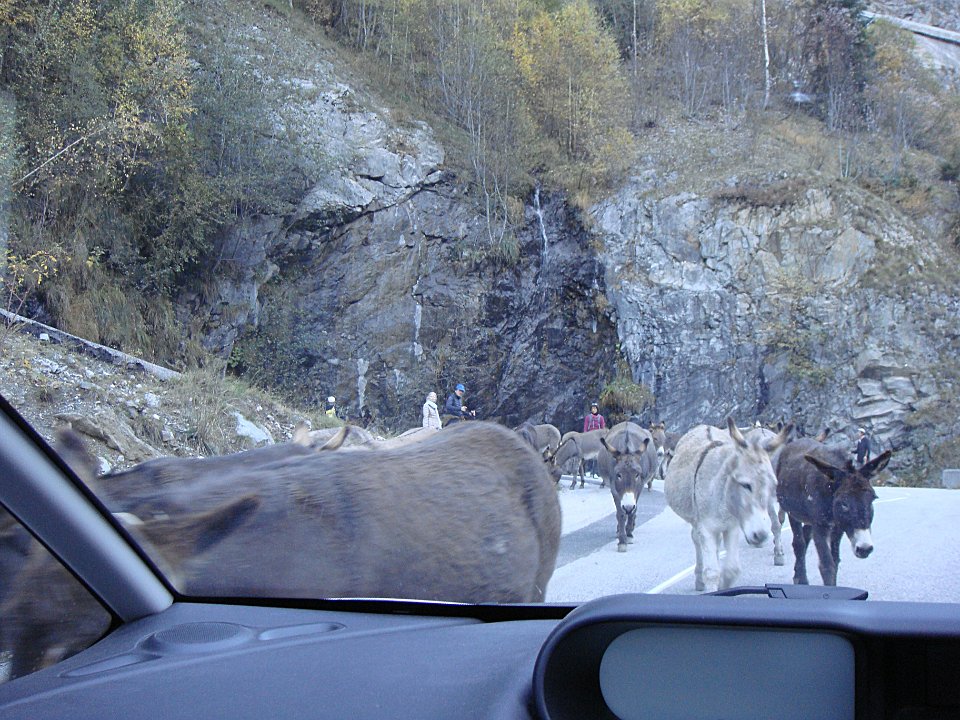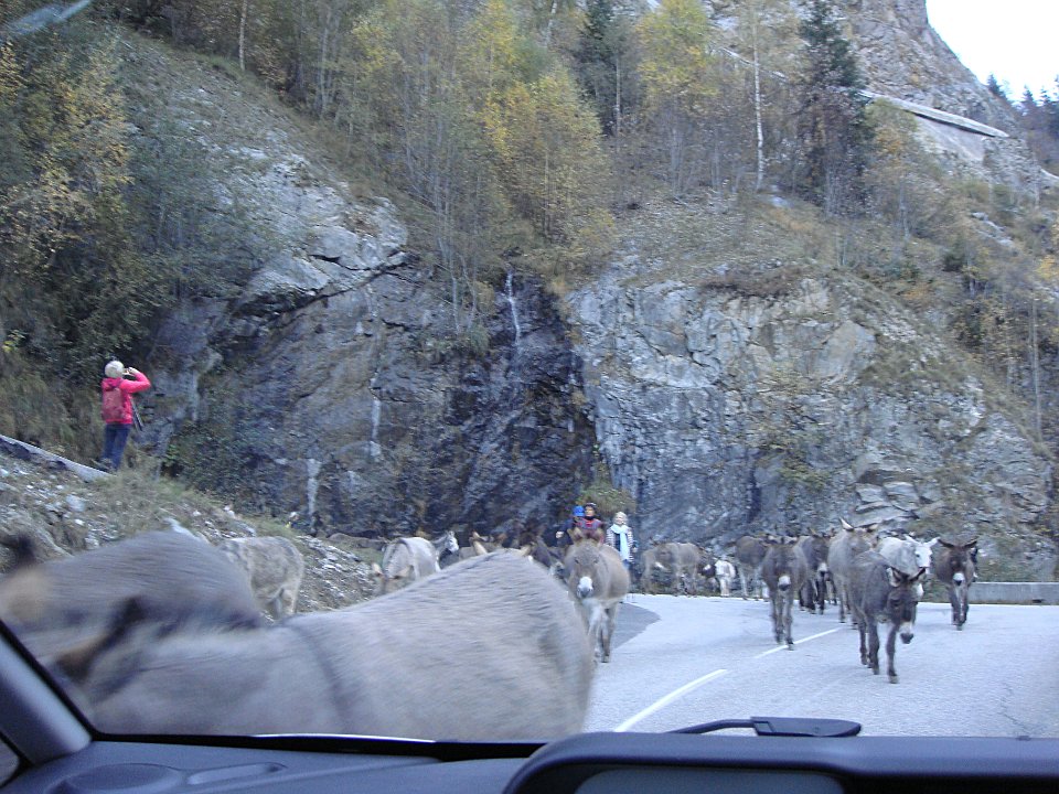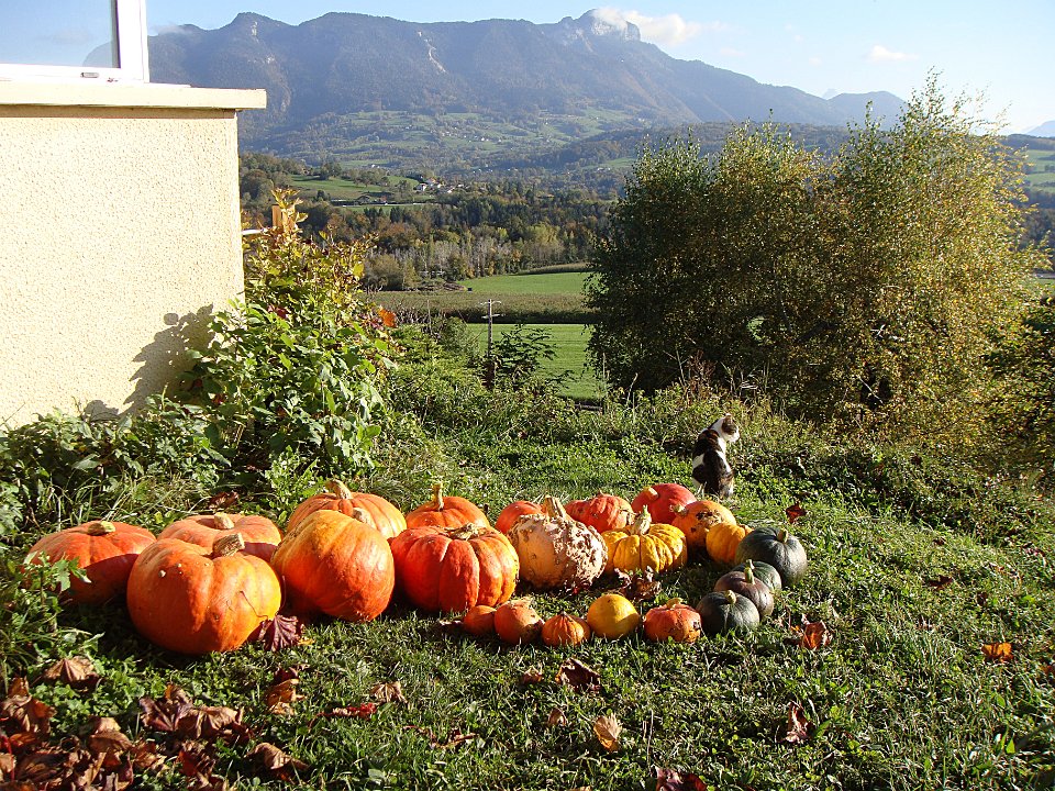 1 Belle récolte de courges avant de partir dans l'après-midi ...2 ... et d'arriver juste à temps au Plan du lac avant le coucher du soleil.3 Vitesse : zéro. Bloqués par les ânes dans la montée vers Saint-Christophe.4 5 Nous ne sommes pas les seuls à les prendre en photo.6 Les Fétoules déjà enneigées sont encore illuminées.7 Il y a bien du monde, à la Bernardière !8 Personne chez les Rivron ...9 ... mals les Laude sont là et Gérard nous aide à décharger la voiture.10 Ça papote sur le parking. Cécile ne reste qu'une nuit, laissant Jean pour la semaine.