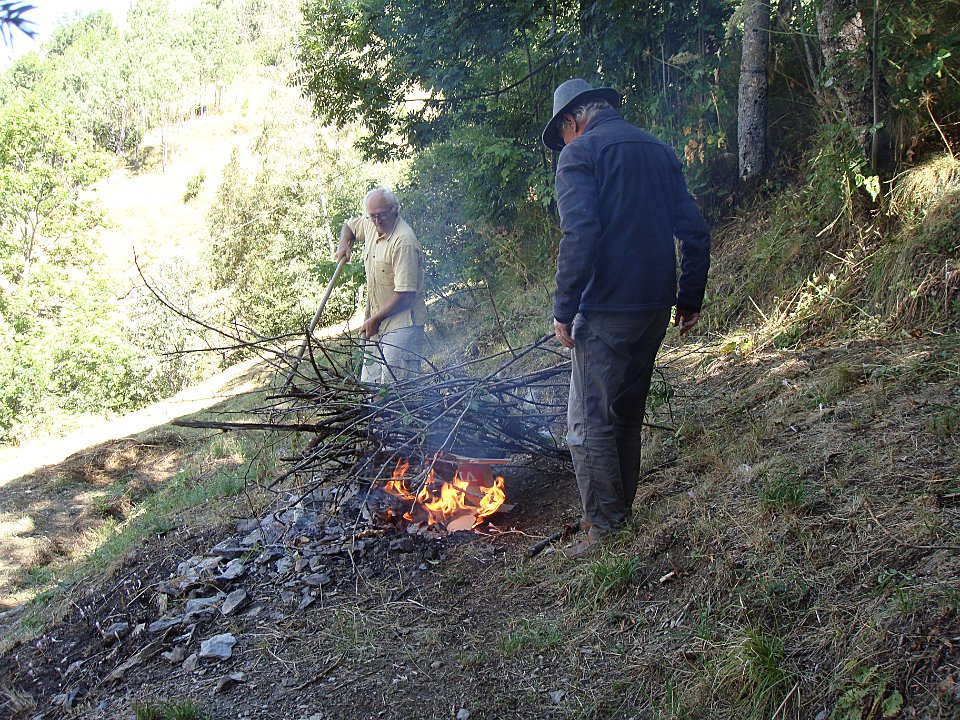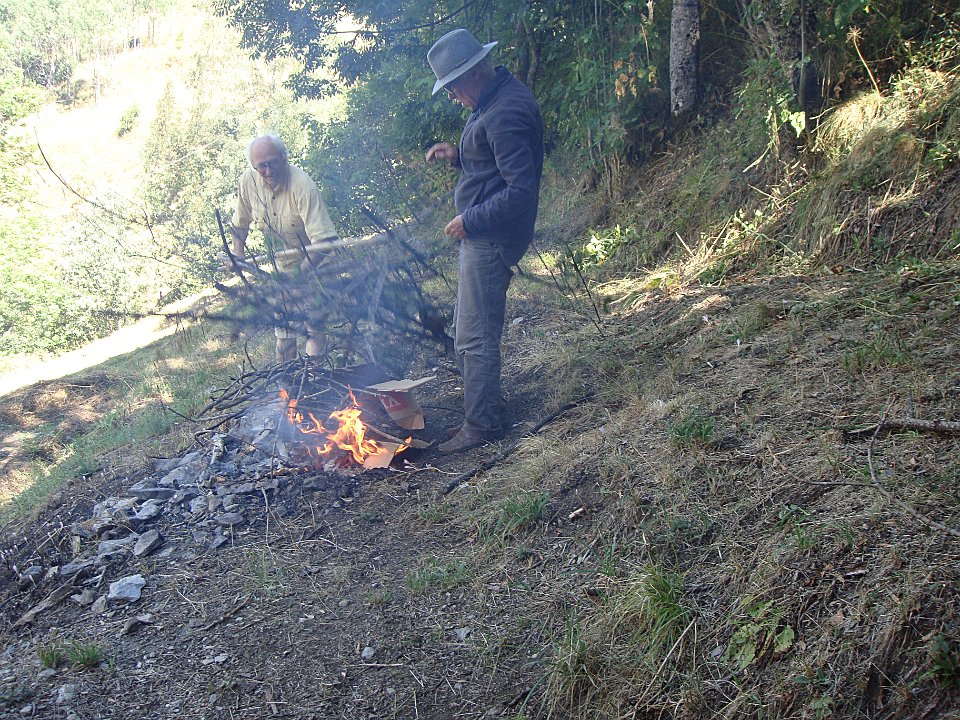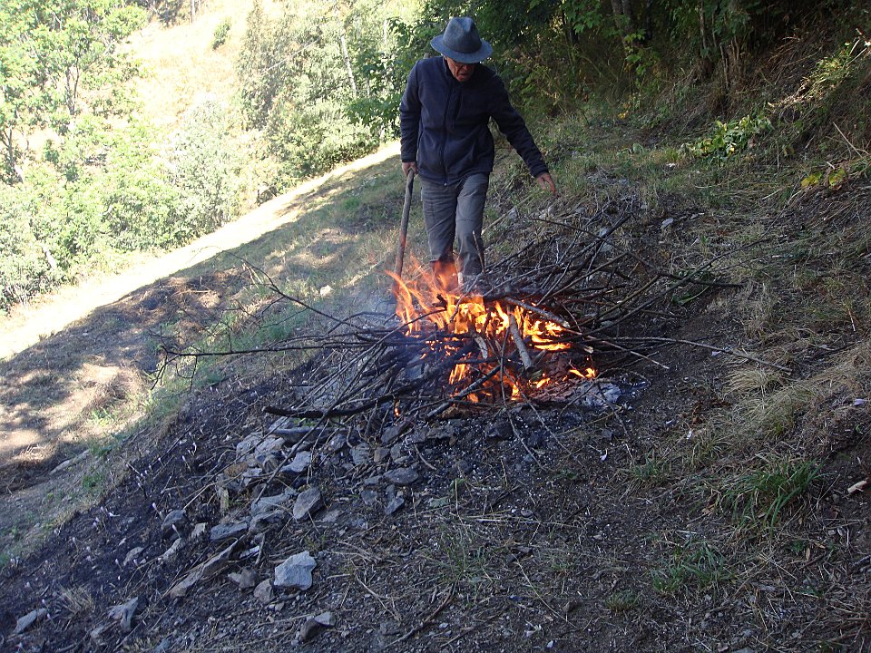 1 Sur le talus où Gérard a failli créer un incendie ...2 ... les colchiques ont fleuri précocement.3 Une nouvelle tentative ?4 Mais Jean-Paul est là pour superviser.5 6 Ce sera bon pour le barbecue.7 Mais voici qu'arrivent Cécile, Julien et Jean.8 D'où papotages sur la terrasse ...9 10 ... puis lors du repas de famille + amis. TravauxJeux