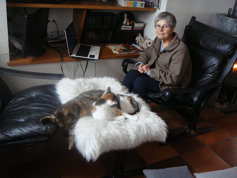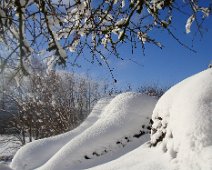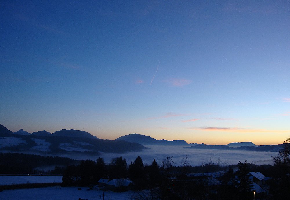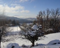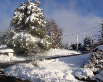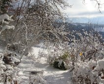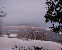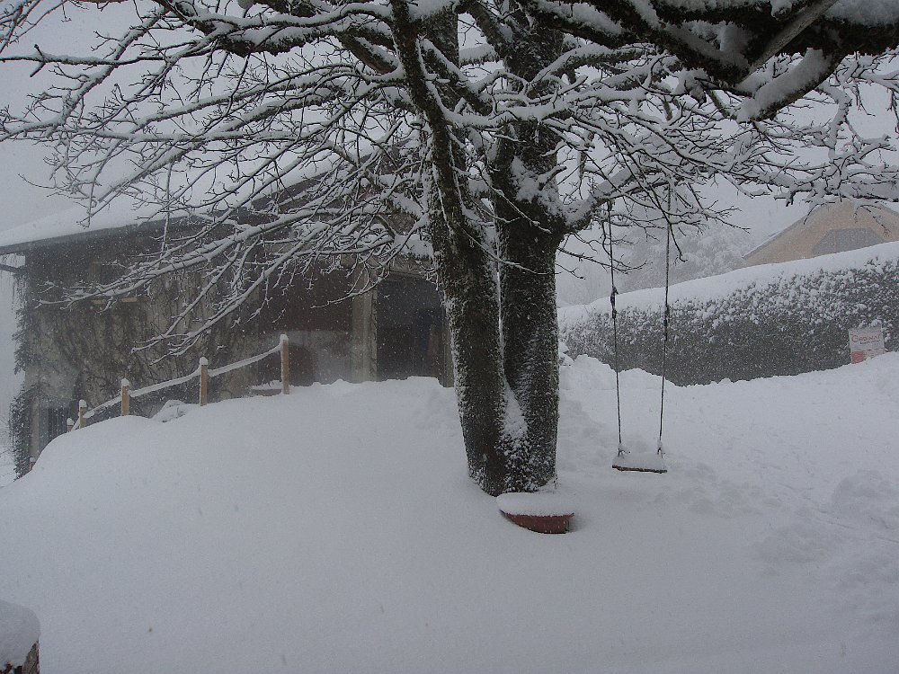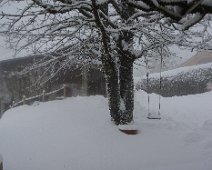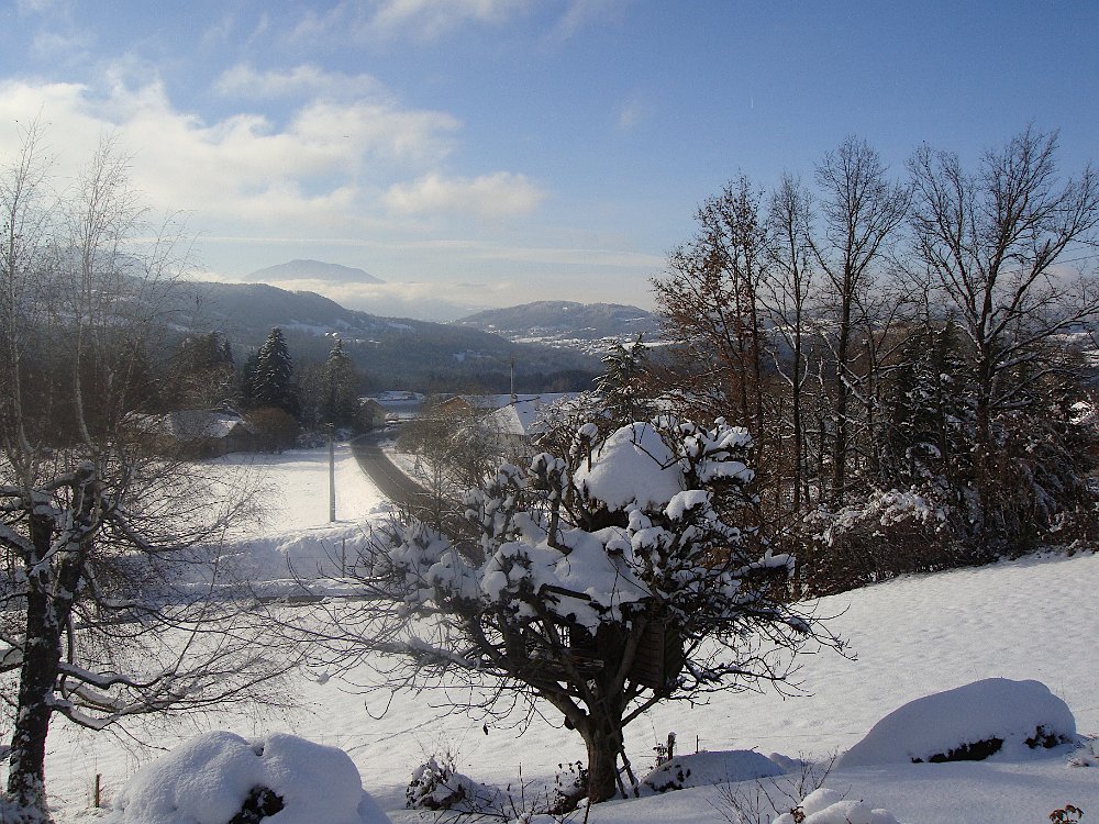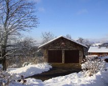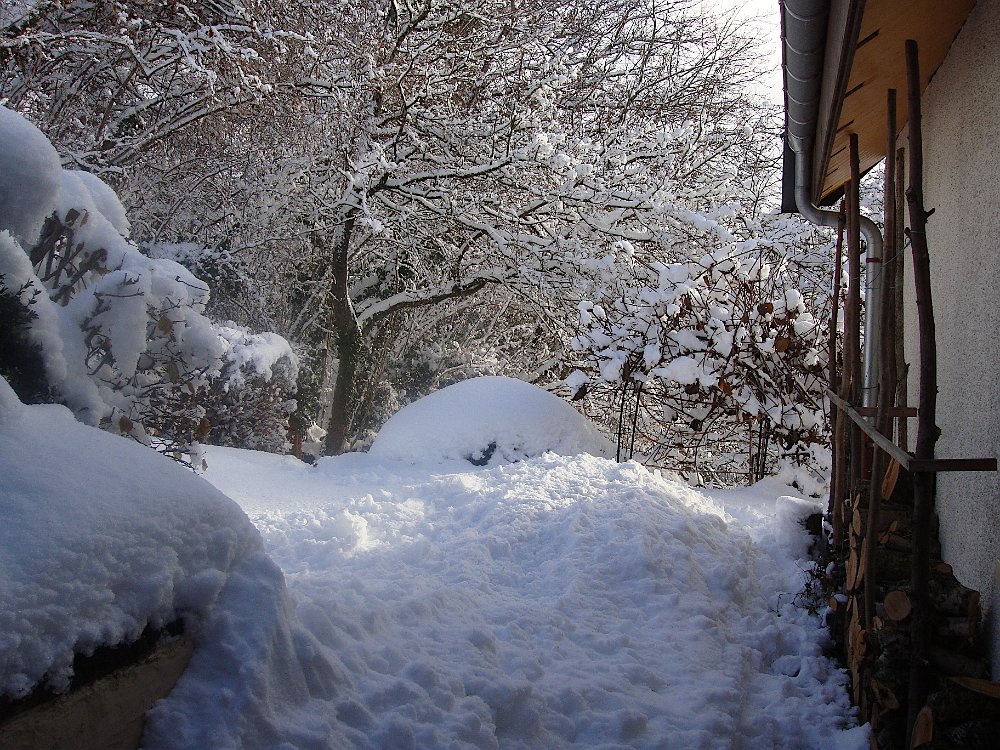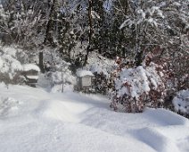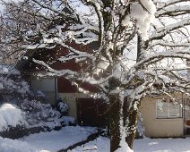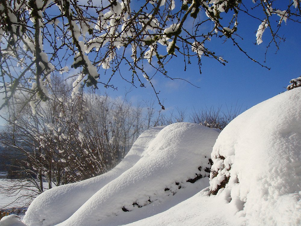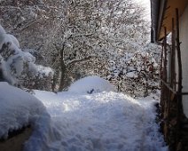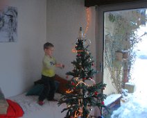 Neige abondante ... ... et rouge-gorges affamés ... ... mais au chaud à l'intérieur. Le temps s'améliore, l'occasion ... ... de quelques photos alentours ... La cabane du noyer, avec son nouveau chapeau. Derrière la maison. Quelques feuilles jaunissantes résistent. Les ruches, toujours vides ... ... attendent le printemps ... ... comme le cotonaster callypige. Mais déneigement et soleil dégagent la route ... ... et le chemin d'accès ... ... vers le garage. Pour la maison, effort minimum : juste un sentier vers la porte d'entrée. Grand beau maintenant, ... sauf à Annecy, enfoui sous la brume, au loin au pied du Semnoz. Brume qui s'étend d'ailleurs le soir, veille du jour des cadeaux ... ... en prévision duquel Arthur a aidé pour le sapin. Encore une petite boule ici ...