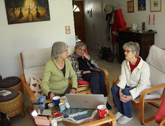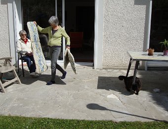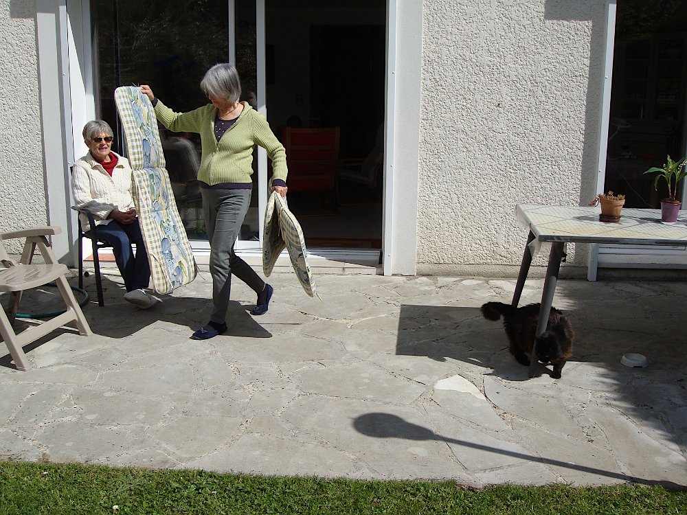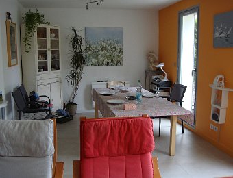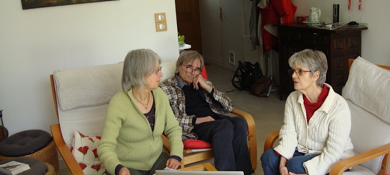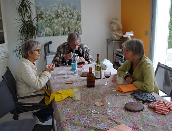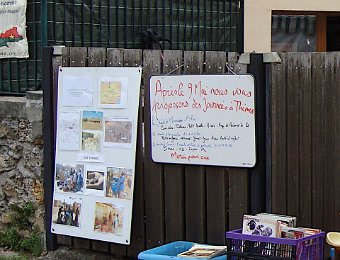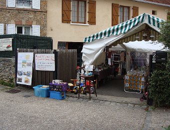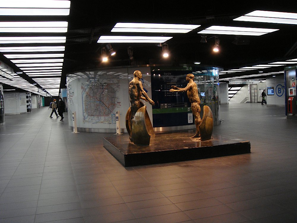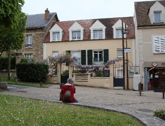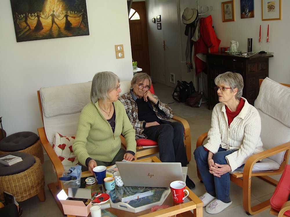 La station Châtelet se modernise ... ... mais la sculpture est toujours là. Nous ne reconnaissons pas la gare. De l'autre côté, peut-être ? Pas plus. En fait, la fois d'avant, nous étions descendus à la station Le Guichet. Nous attendons Agnès. En face, une petite vente de charité. Après quelques appels téléphoniques, Agnès est venue nous chercher. Là, nous reconnaissons bien sa maison ... ... et le jardin. Toujours quelques-uns de ses tableaux. Et même un petit modelage. La table est déjà mise. Après le dessert ... ... échange de nouvelles. Avant de repartir (couvre-feu oblige), nous pouvons même profiter un peu du soleil. Jardin des plantesArc-en-ciel
