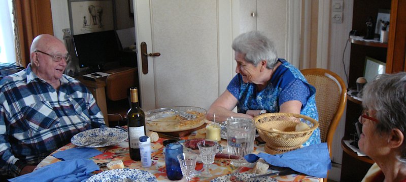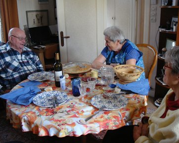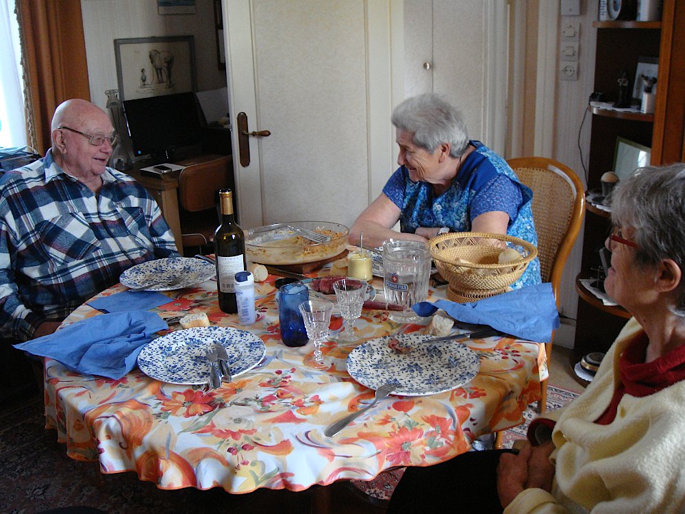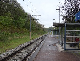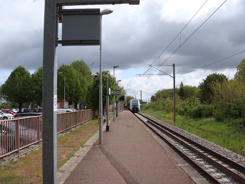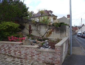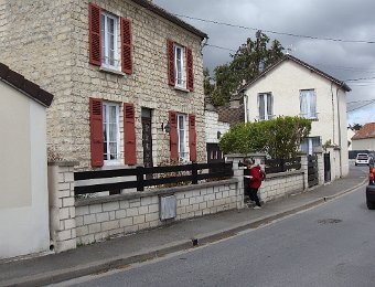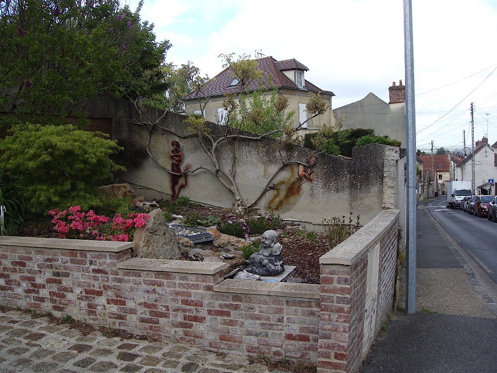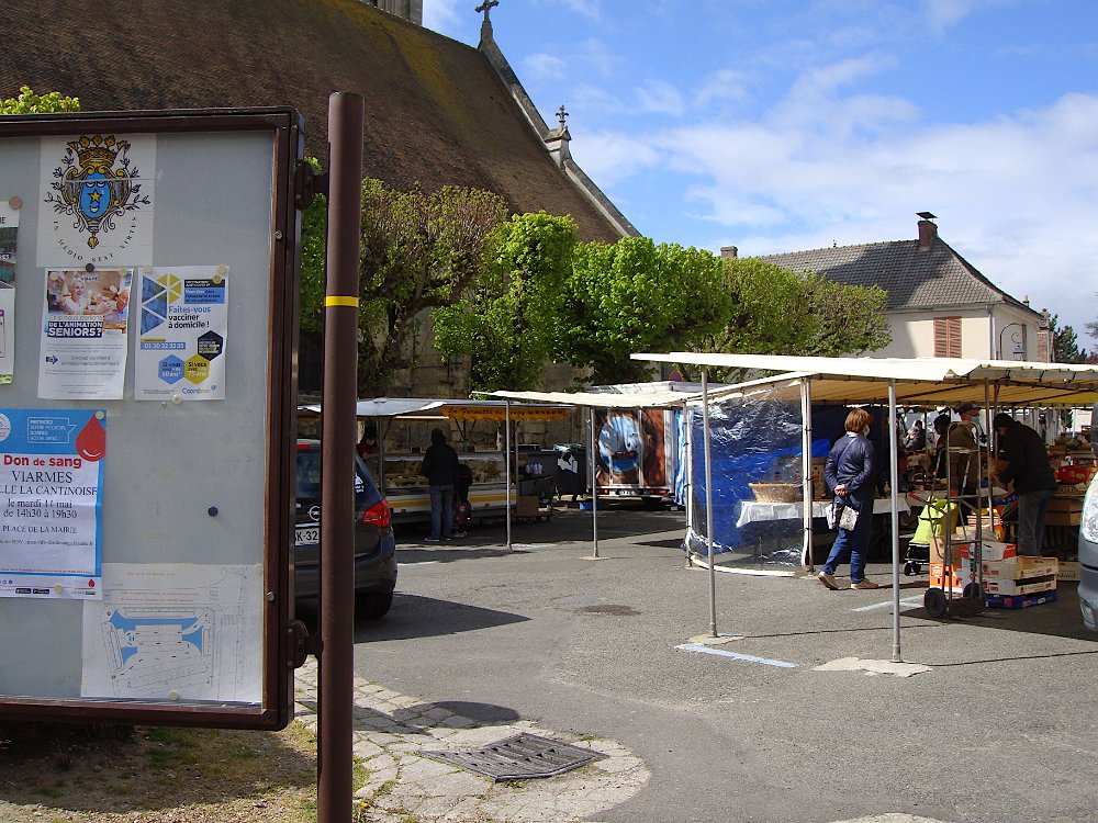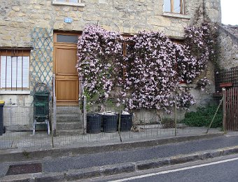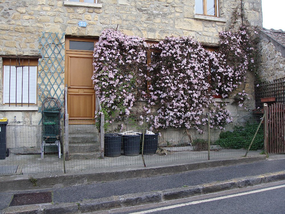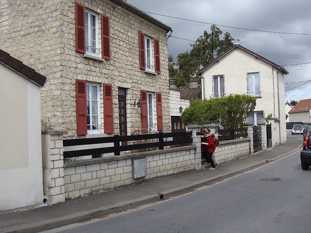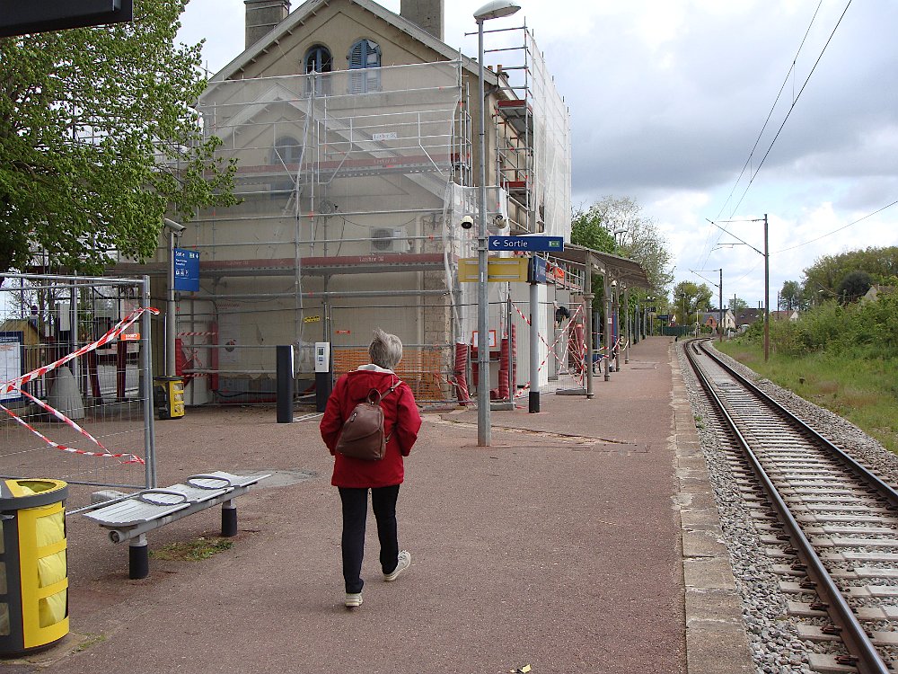 Arrivée à Viarmes ... ... où la gare est en pleine réfection. Descente vers chez le tonton. Une décoration originale. L'église Saint-Pierre Saint-Paul, toujours là ... ... et le petit marché à côté. Et arrivée au 35 rue du Gaudron ... ... avec ses habitants en pleine forme. Pas encore de fleurs ... ... et l'on attend le passage des saints de glace pour mettre le barnum. Pour attendre le train de retour à Paris, nous profitons des abris nouvellement installés. BaladesRosalie et Pierre