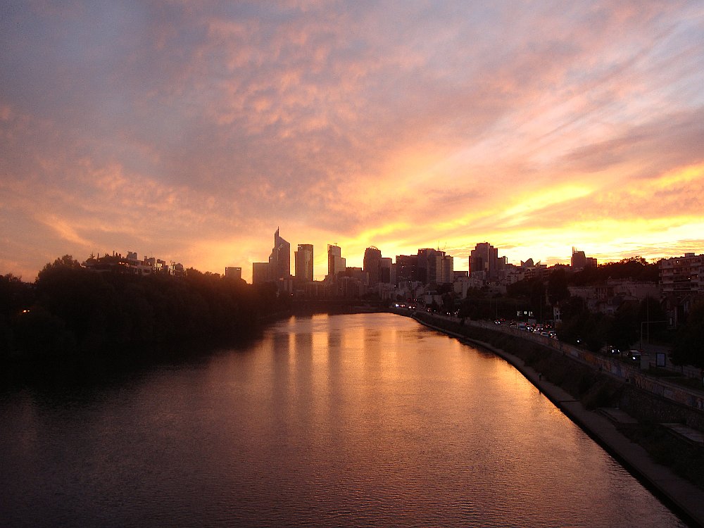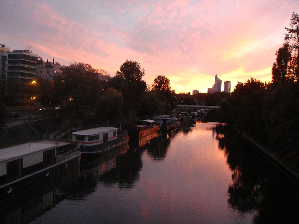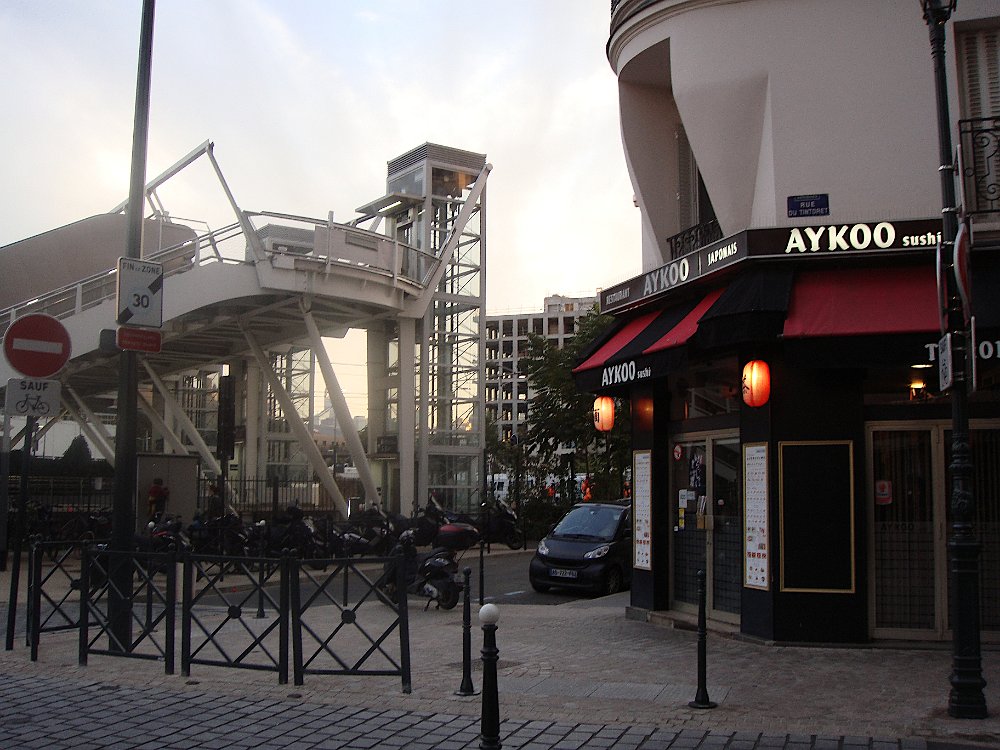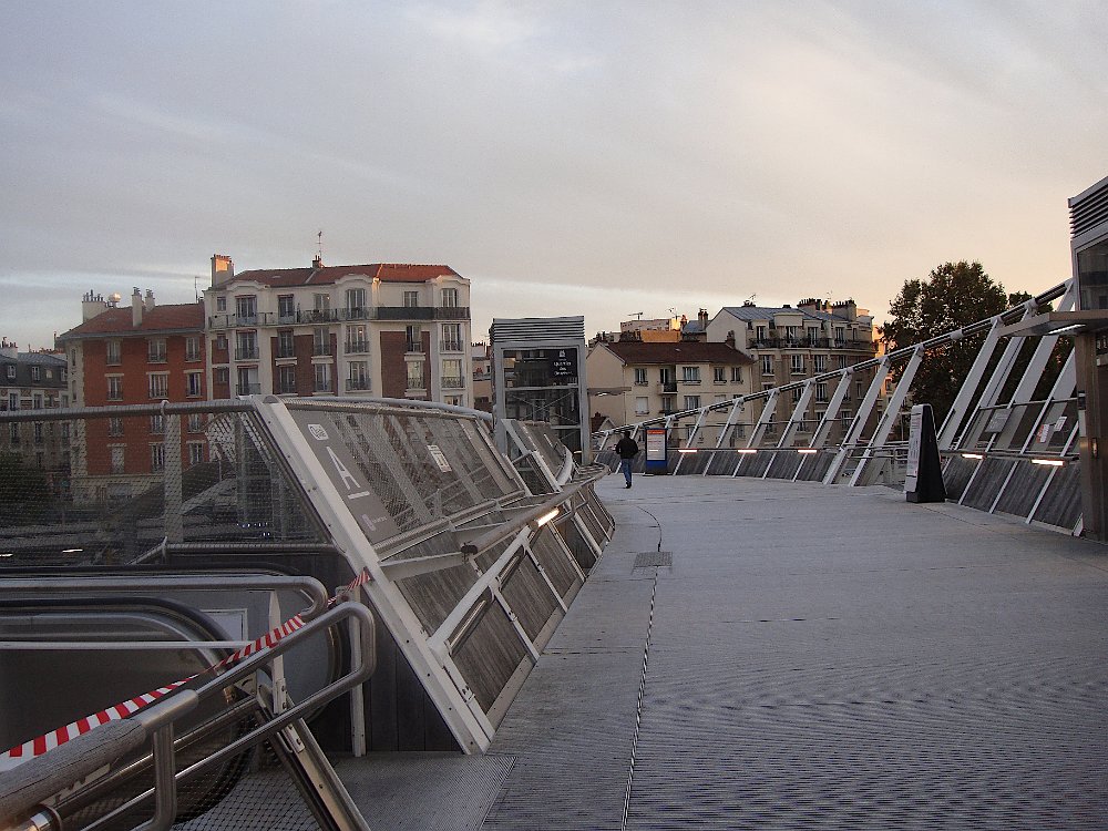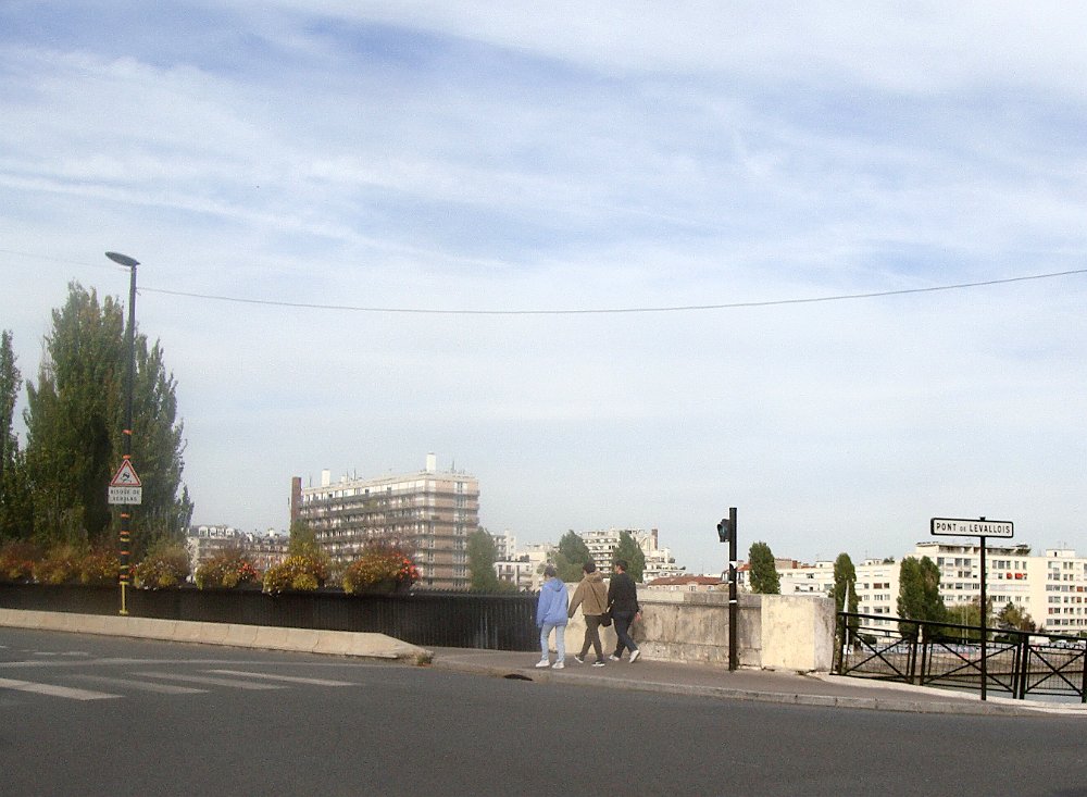 Métro jusqu'au Pont de Levallois ... ... et traversée du-dit pont. À la gare de Bécon, une nouvelle passerelle ... ... impressionnante de largeur. Redescente vers la rue du Tintoret ... ... et moment de nostalgie. Peu de changements, en fait. Au retour, superbe coucher de soleil 4 Marathon6 Rosalie, Pierre