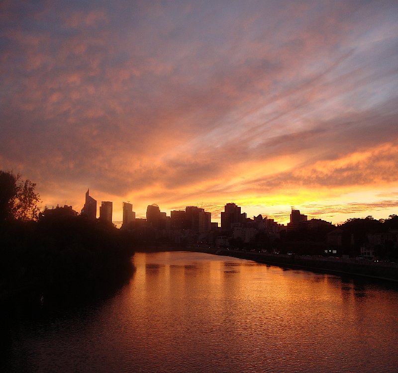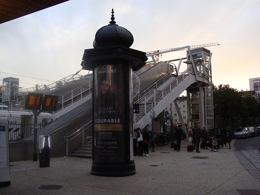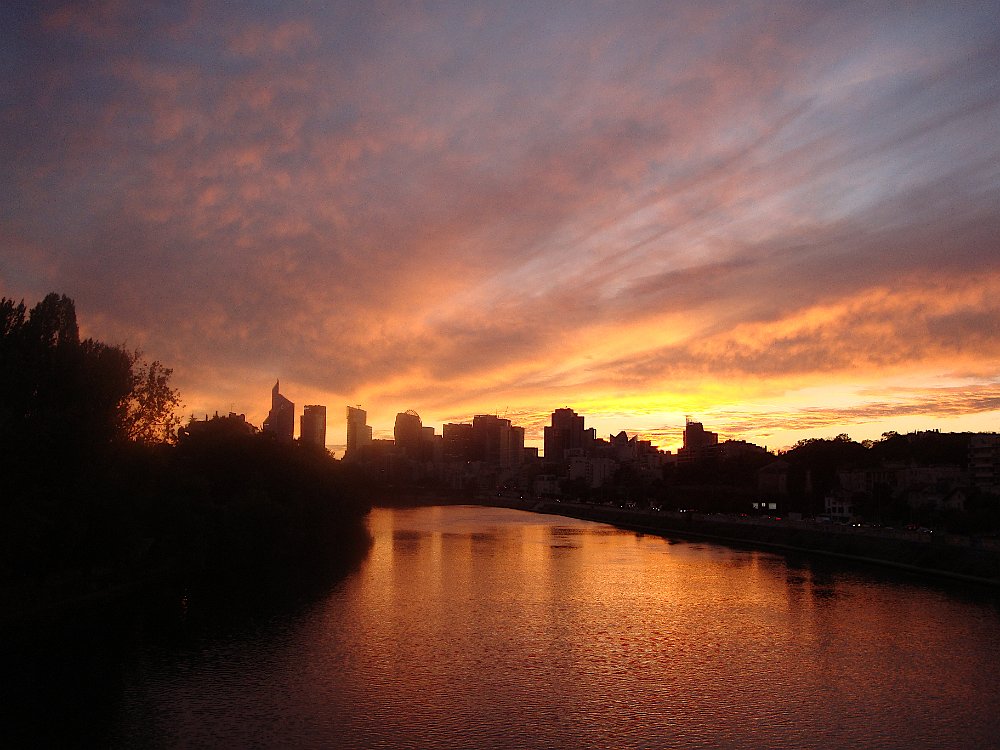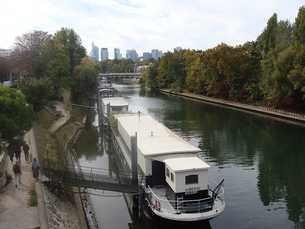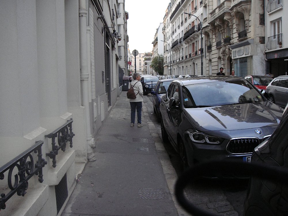 Métro jusqu'au Pont de Levallois ... ... et traversée du-dit pont. À la gare de Bécon, une nouvelle passerelle ... ... impressionnante de largeur. Redescente vers la rue du Tintoret ... ... et moment de nostalgie. Peu de changements, en fait. Au retour, superbe coucher de soleil 4 Marathon6 Rosalie, Pierre