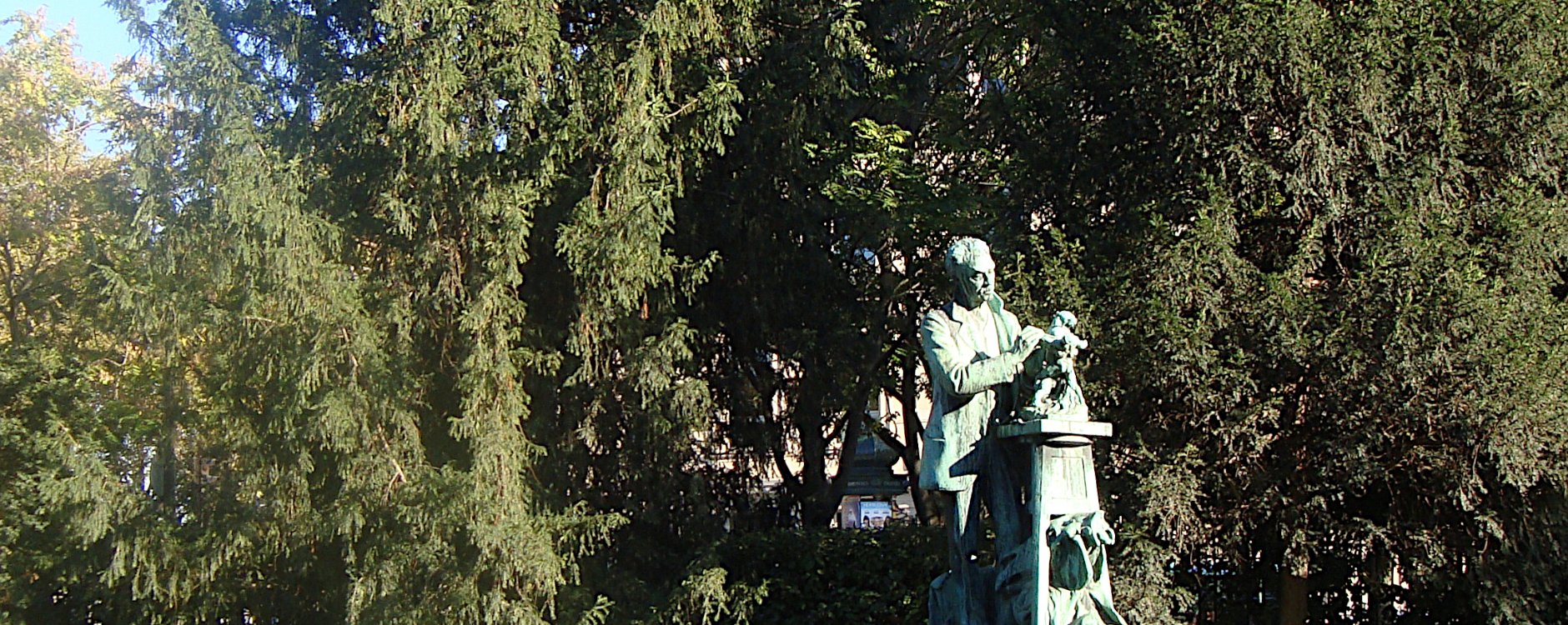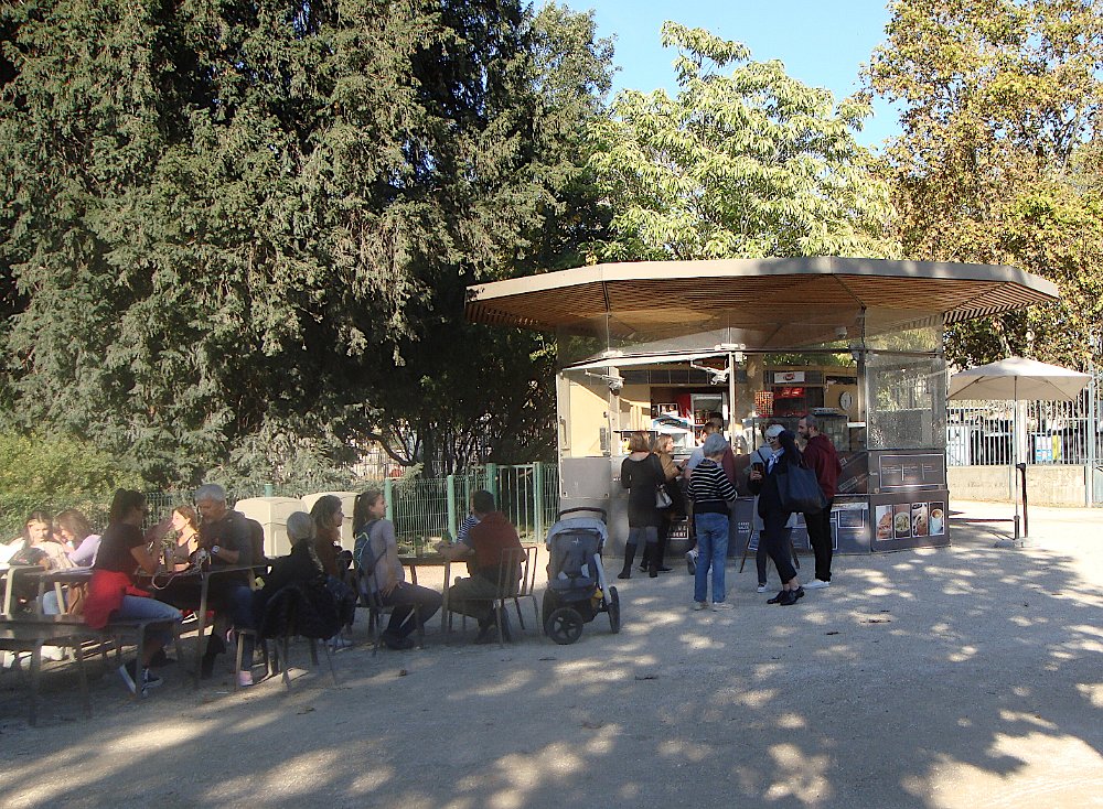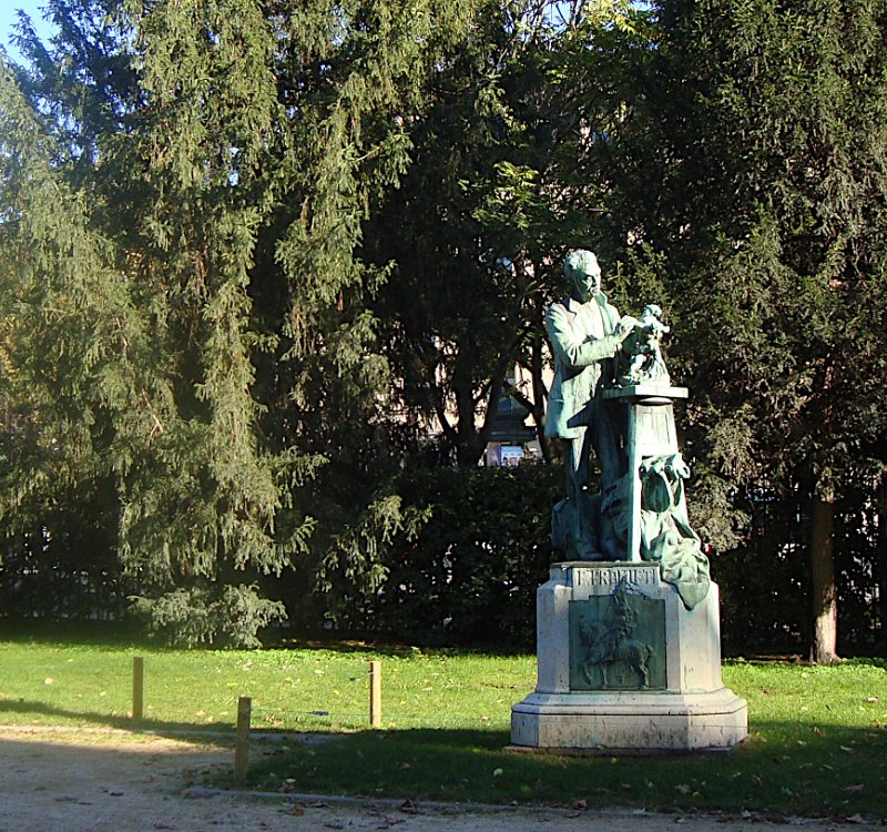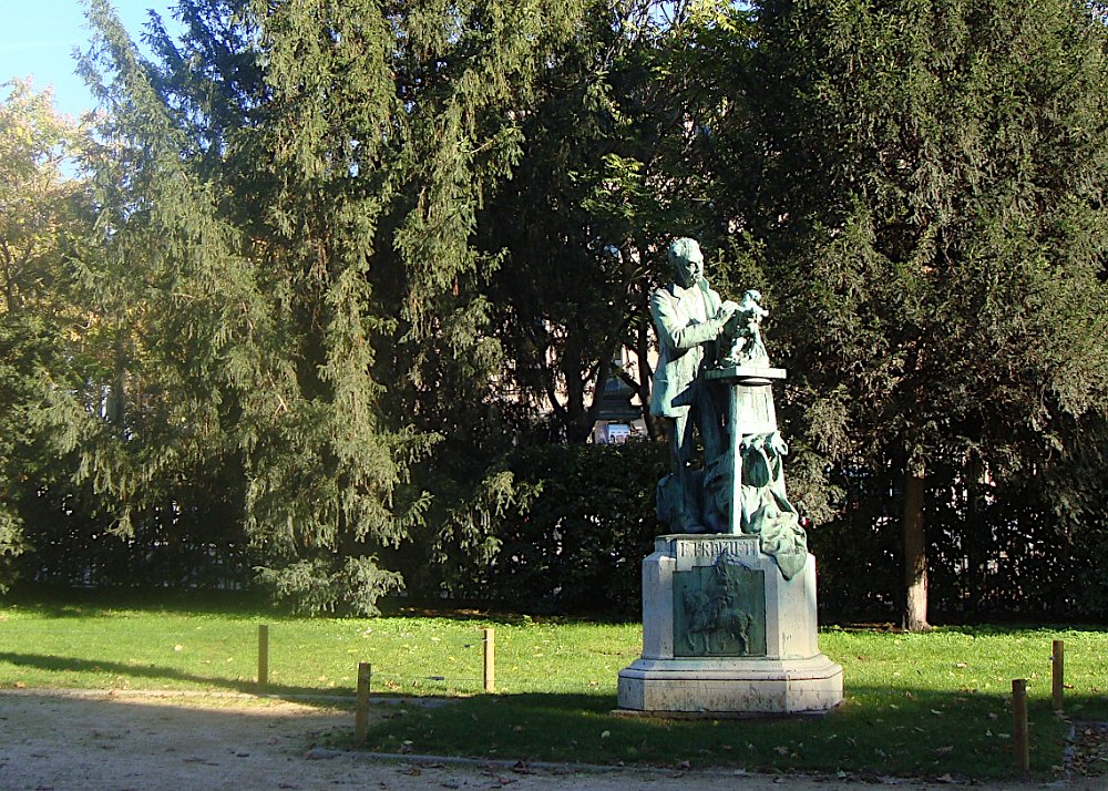 Sculpture en abyme : Emmanuel Frémiet façonnant son « Dénicheur d'oursons », exposé en plus grand ailleurs dans le parc. La galerie d'anatomie comparée et de paléontologie est en plein réfection. Cette partie est déjà terminée. Quelle que soit la saison les jardiniers arrivent à présenter des fleurs. Tout près de l'entrée principale, la buvette a du succès. 6 Rosalie, Pierre8 Place des Vosges
