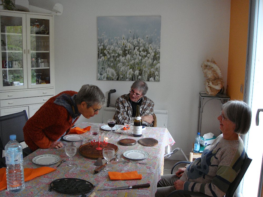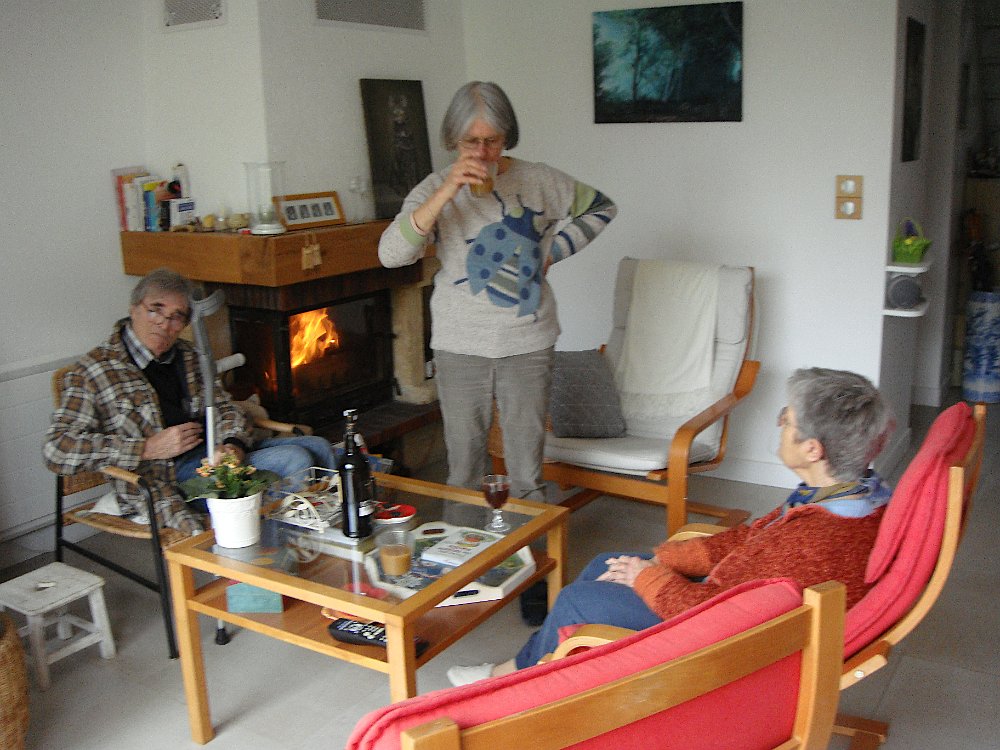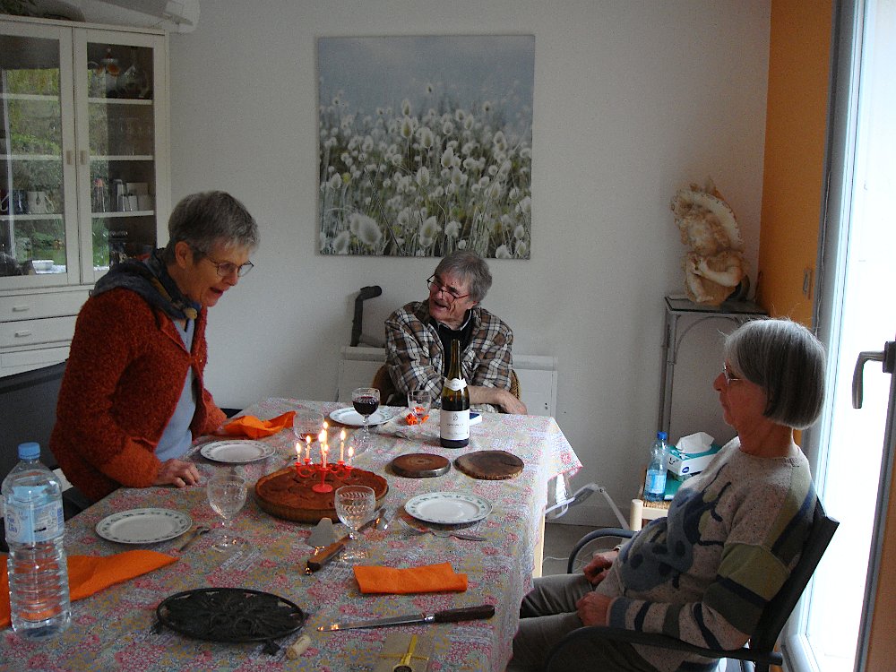 Agnès est venue nous chercher à la gare de Gif-sur-Yvette. Pas de grand changement à la maison ... ... ni au jardin. Dans le séjour, un des tableaux a été remplacé. L'apéro ... ... et, après le repas, le gâteau d'anniversaire de Martine ... ... qu'elle arrive bien à souffler. Une nouvelle composition d'Agnès, à partir de deux photos La collection des œuvres devient envahissante ! Un peu de route et balade dans la vallée de Chevreuse. Le château de la Madeleine. Il ne reste quasiment rien de l'original de 1030. Les vestiges visibles datent au plus tôt du XIVe siècle. Au XVIIe siècle Jean Racine supervisa des modifications du donjon Vue panoramique de la vallée. Depuis le parking en bas ... AligreRosalie, Pierre