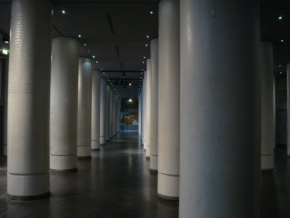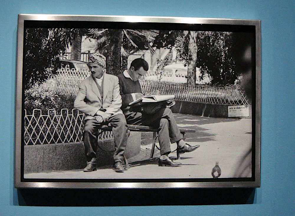 De chez nous, on peut facilement aller à l'Institut de monde arabe : « Il suffit de passer le pont ... ». Les deux complices. La gestion de l'Algérie par la France, en 1961. Mais les temps vont changer, très bientôt. Le sous-sol aux imposantes colonnades ... ... avec, tout au bout, une carte du « monde arabe » ... et qui abrite l'auditorium. Dehors Parisiens et touristes profitent des bords de Seine ... ... ou du jardin de la bibliothèque Forney dans l'hôtel de Sens. Rosalie, PierreLaurence, Patrick, Cheval de Troie