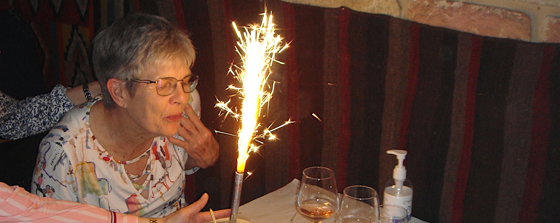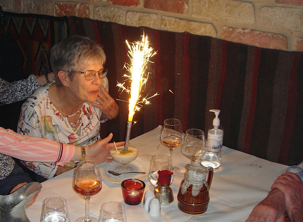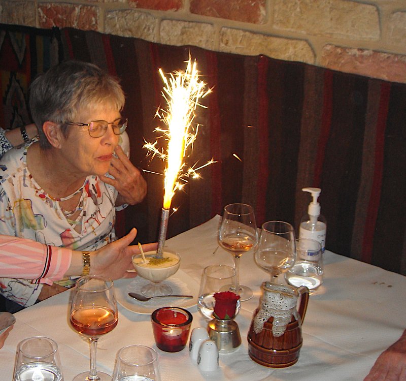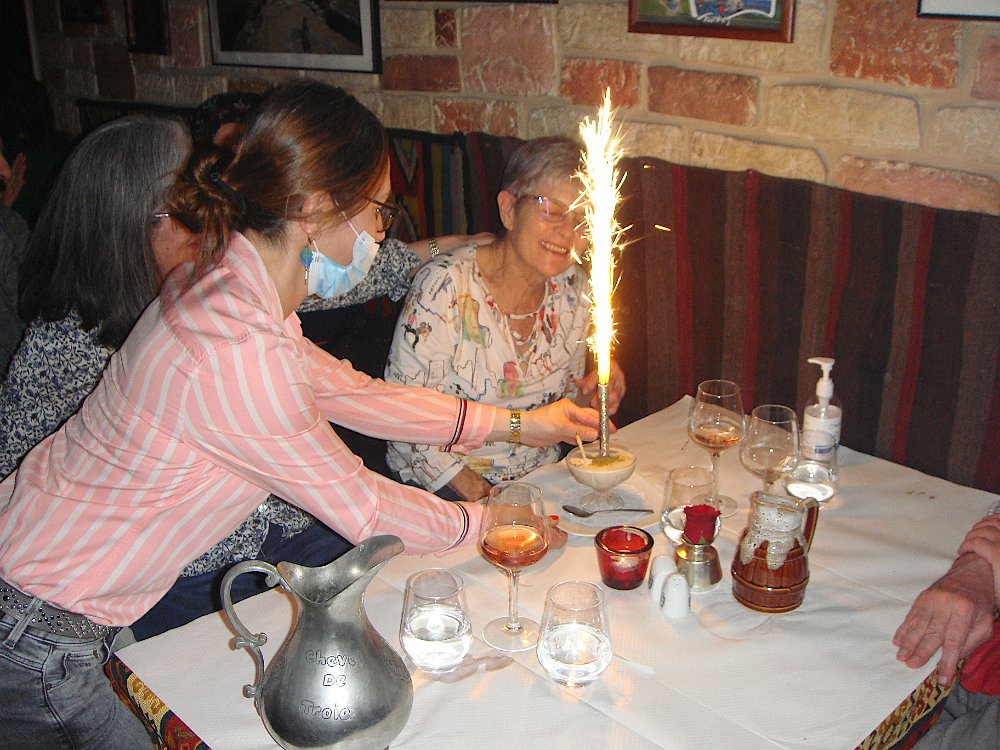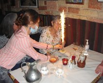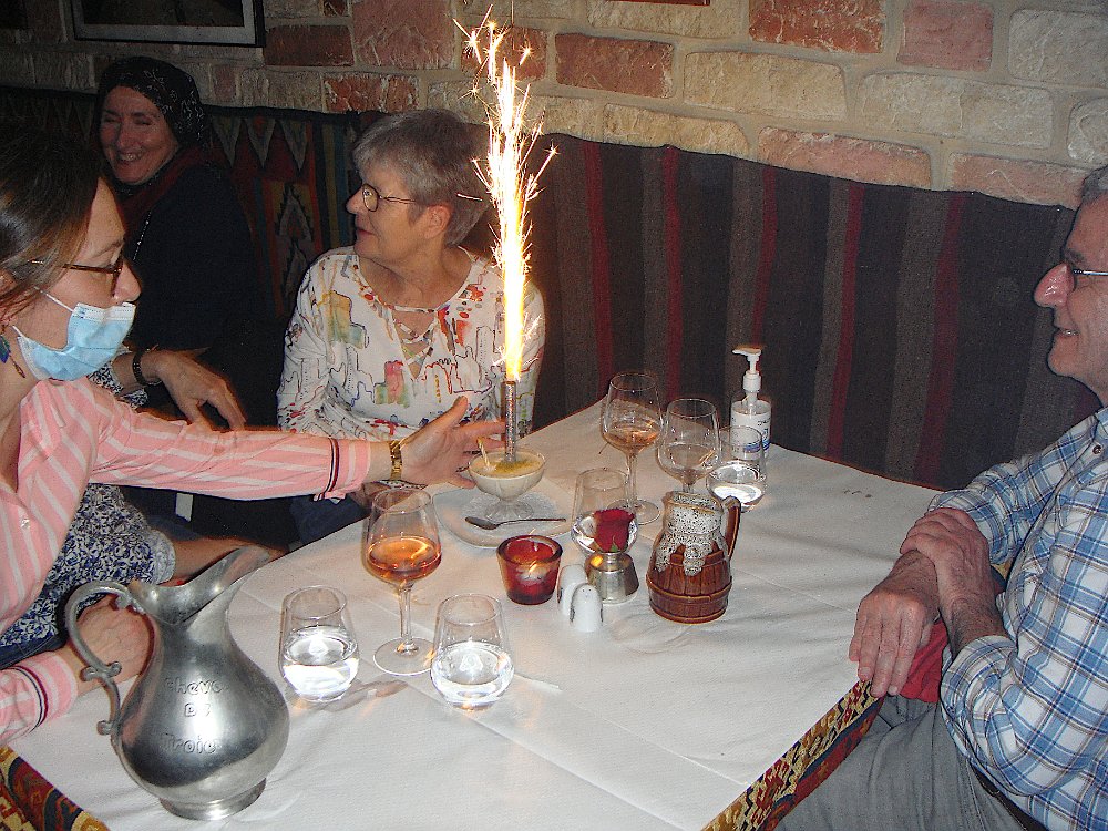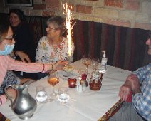 Au petit restaurant Le cheval de Troie, rue Charenton. Cuisine grecque auparavant, turque maintenant, mais toujours excellente. Et surprise d'anniversaire pour Martine .... ... avec musique et chant repris par la clientèle. Pas moyen d'éteindre juste en soufflant dessus ! Un bout de chemin pour raccompagner Laurence et Patrick. Expo DepardonPetit Palais
