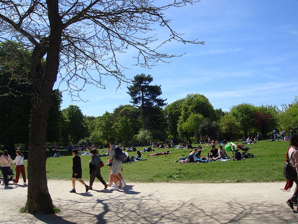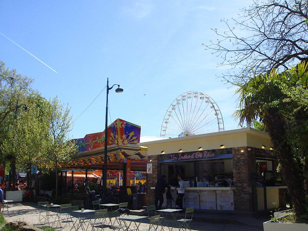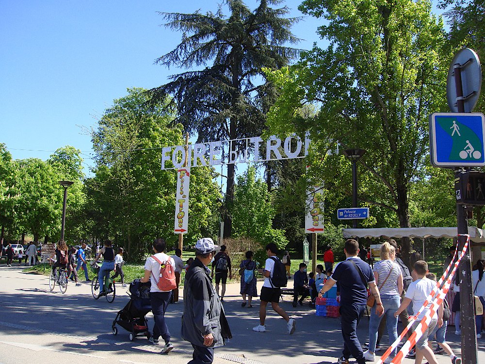 Quelques kilomètres à pied via la coulée verte René Dumont. Un nouveau graffiti. Tamaris déjà en fleur ? Pas facile à arroser ! Par ce beau temps, le jardin de Reuilly - Paul-Pernin fait bien des heureux. Et nous redescendons sur l'avenue Dausmenil ... ... juste avant la mairie du XIIe. Un début de manif ? En tout cas ils vont aussi vers Vincennes ... ... où, nous n'y avions pas pensé, se tient la Foire du Trône ... ... avec ses attractions pour qui aime se faire peur, comme la grande roue ou ... ... mieux, la tour de chute pour les estomacs bien accrochés. Nous nous empressons d'aller dans une zone plus calme ... ... regarder les canoteurs. Bien d'autres préfèrent aussi se prélasser au calme. Petit PalaisJardin des plantes