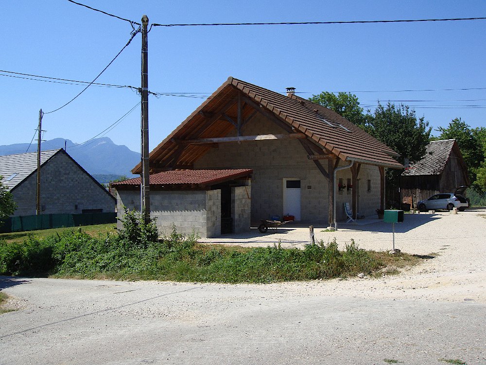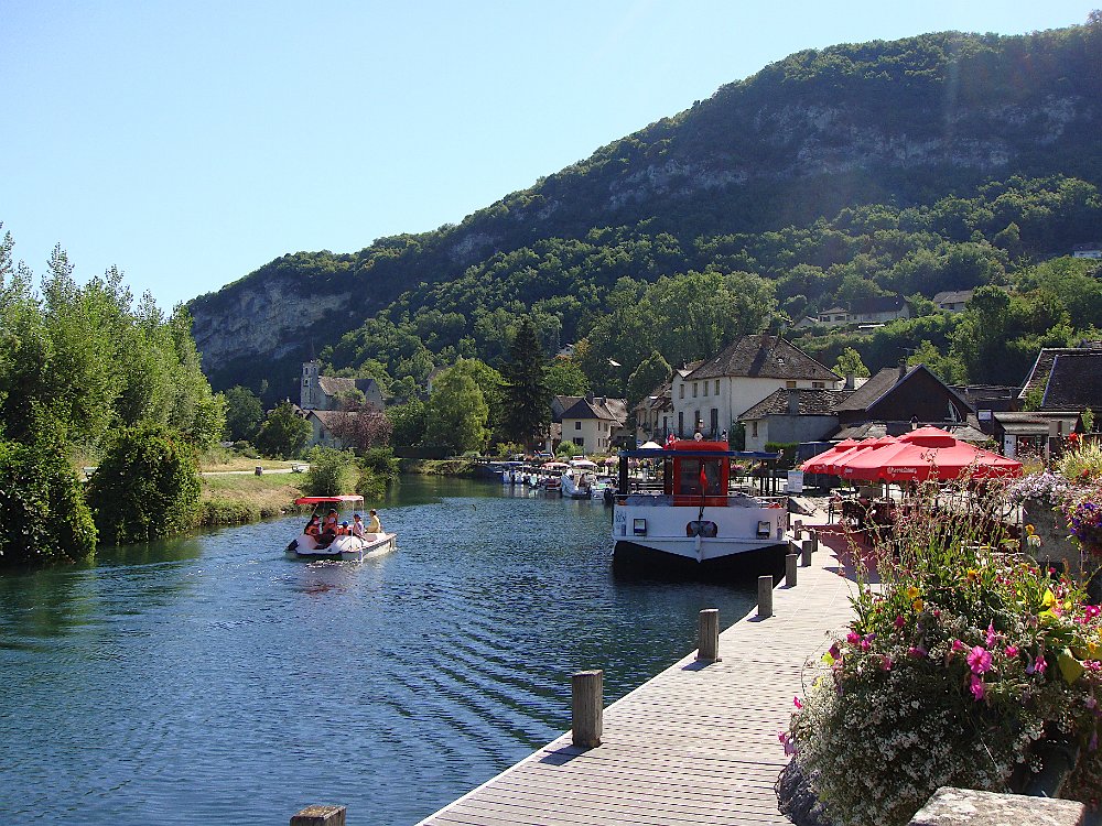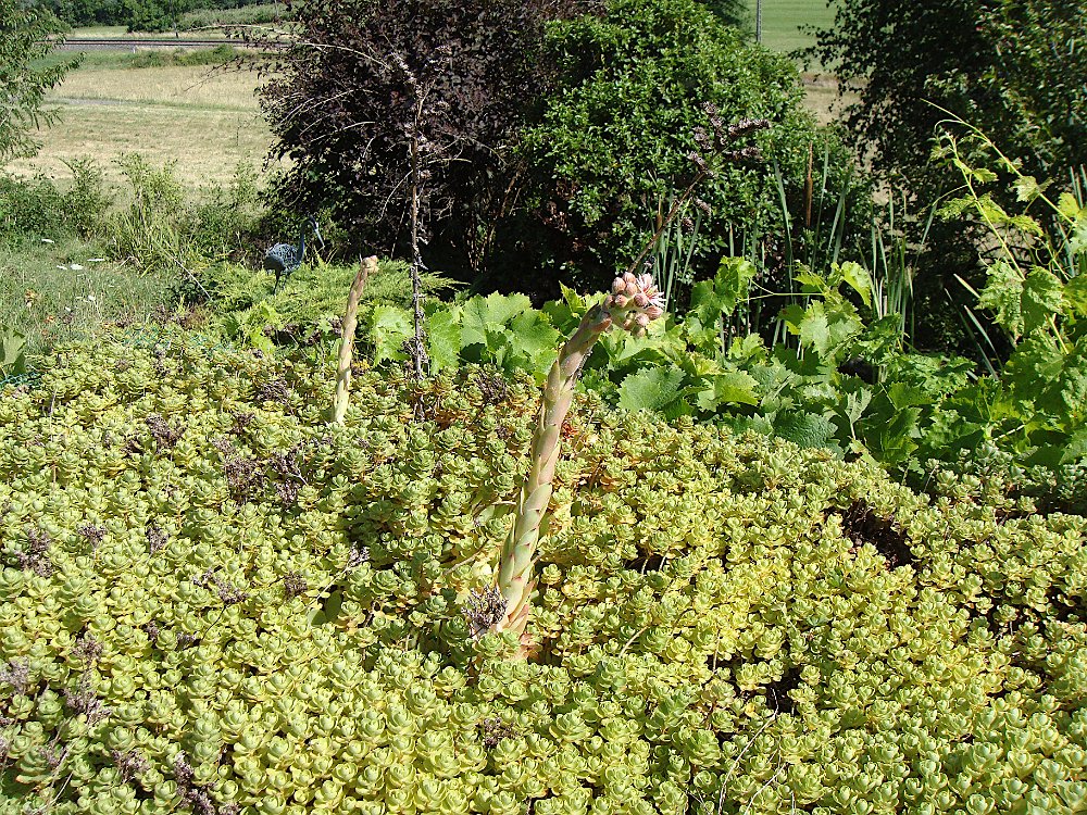 En ce juillet très chaud et sec, les arbustes souffrent, mais les grenouilles se régalent d'insectes ...... ainsi que les araignéesLe gouet (Arum maculatum, arum tacheté, poison violent) en profite bien aussi ...... et aussi les plantes grasses et rustiques, comme cette joubarbe.Pour aller au Tartarin, nous passons par Seyssel puis Chanaz.Notre prochain lieu de vacances ?Nous montons vers le village ...... pour la rituelle photo de la maison d'en face ... Labels