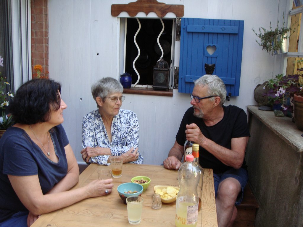 Chez Michelle et Thierry le jardin devient de plus en plus confortable.Malgré son air apparemment triste, Orcane est contente de nous revoir.La preuve !Échange de nouvelles .Parfois on aperçoit un gecko.À dix minutes en voiture, le lac de la Roucarié Labels Ambialet