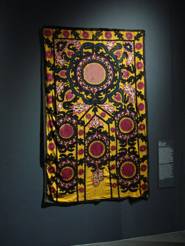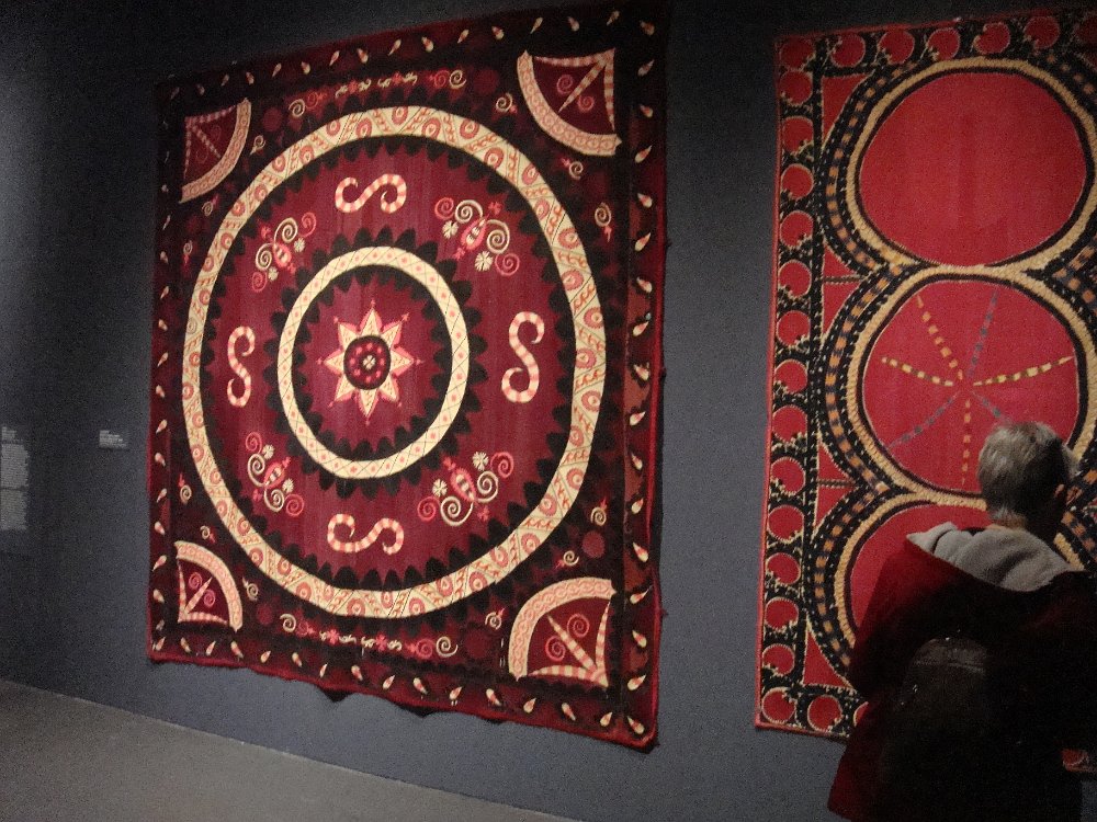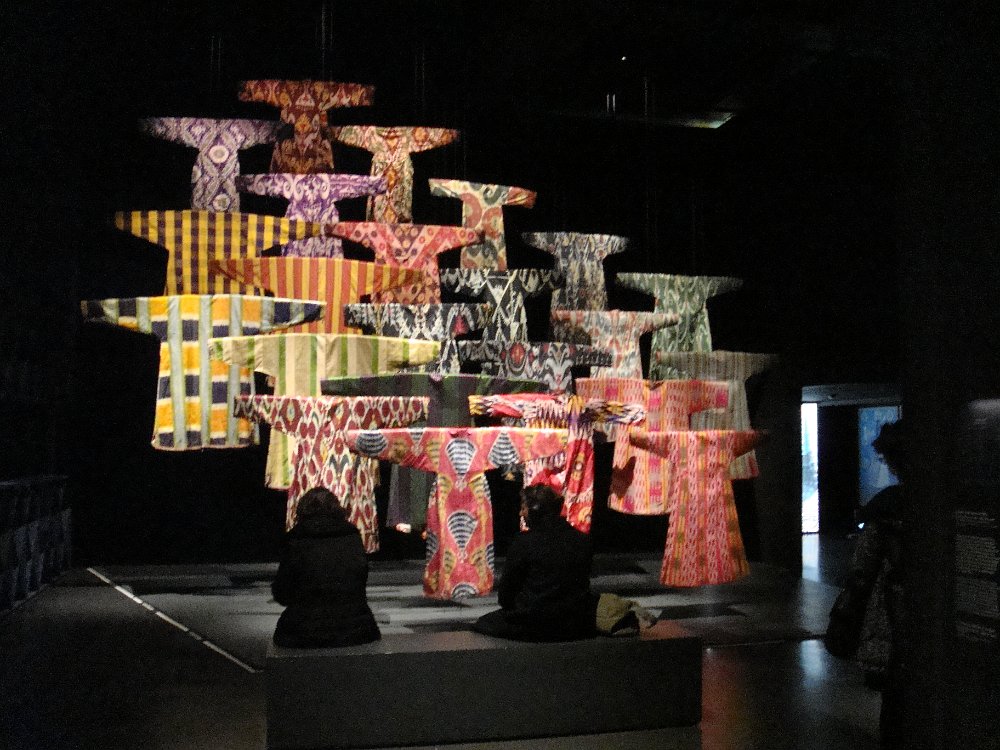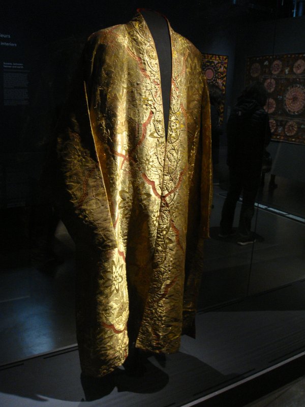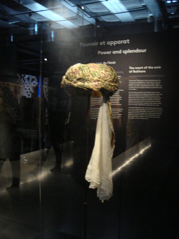 En route vers l'Institut du monde arabe ...... pour une exposition d'arts d’Ouzbékistan.Or et soie. Tissage réservé aux hommes.La réalisation des tapis, tout aussi délicate, est réservée aux femmes.Les plus grands et les plus beaux sont souvent des cadeaux de mariage.Costumes traditionnels Labels Rosalie & Pierre à PoissyCité universitaire internationale