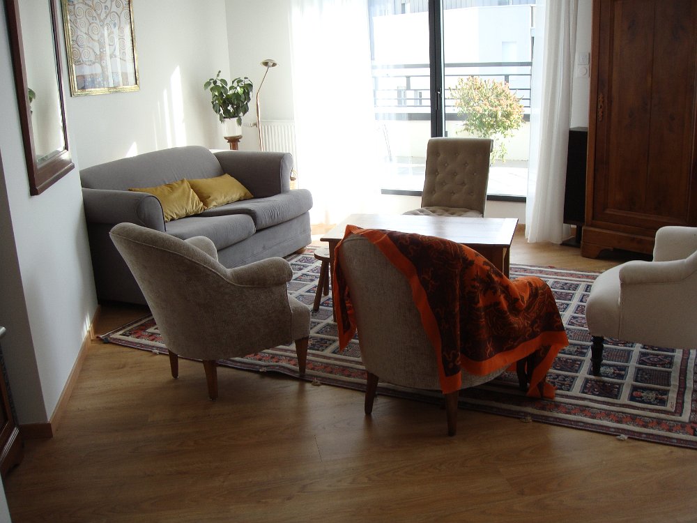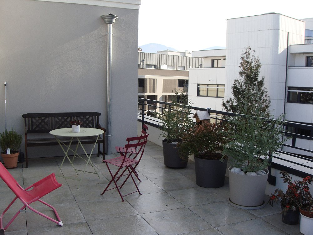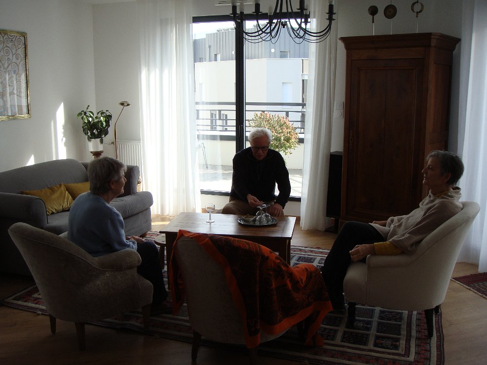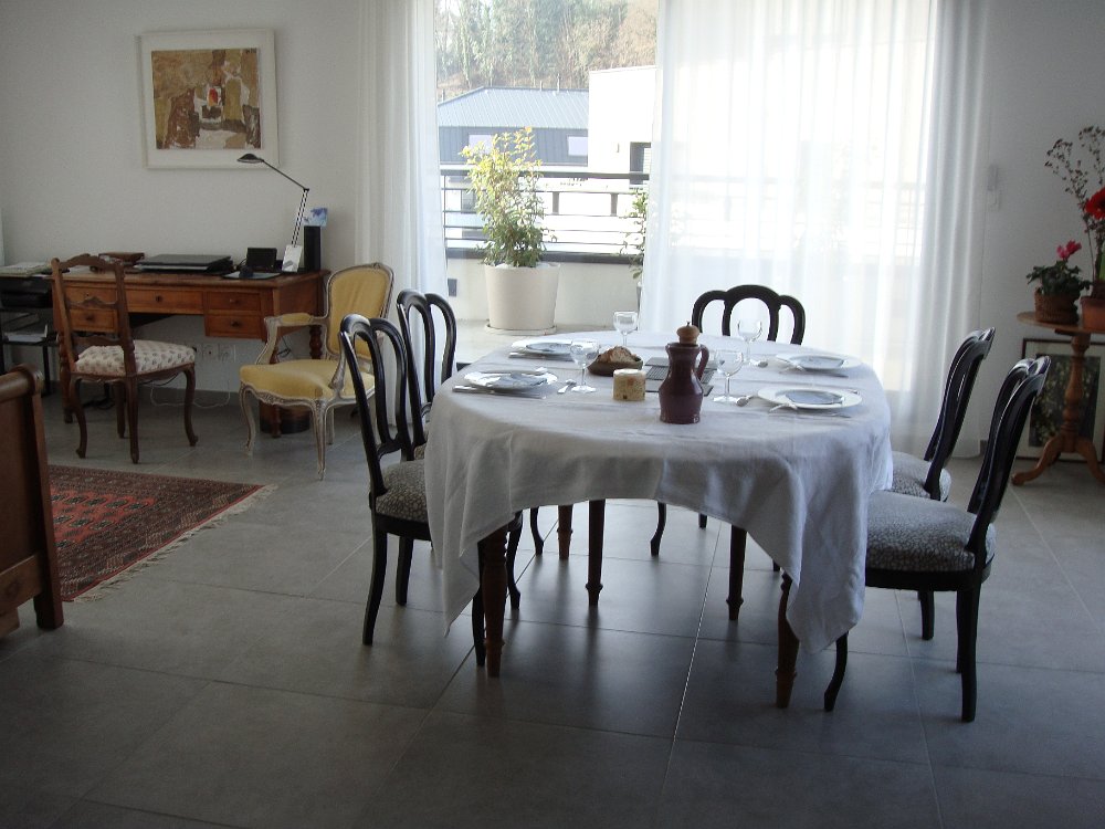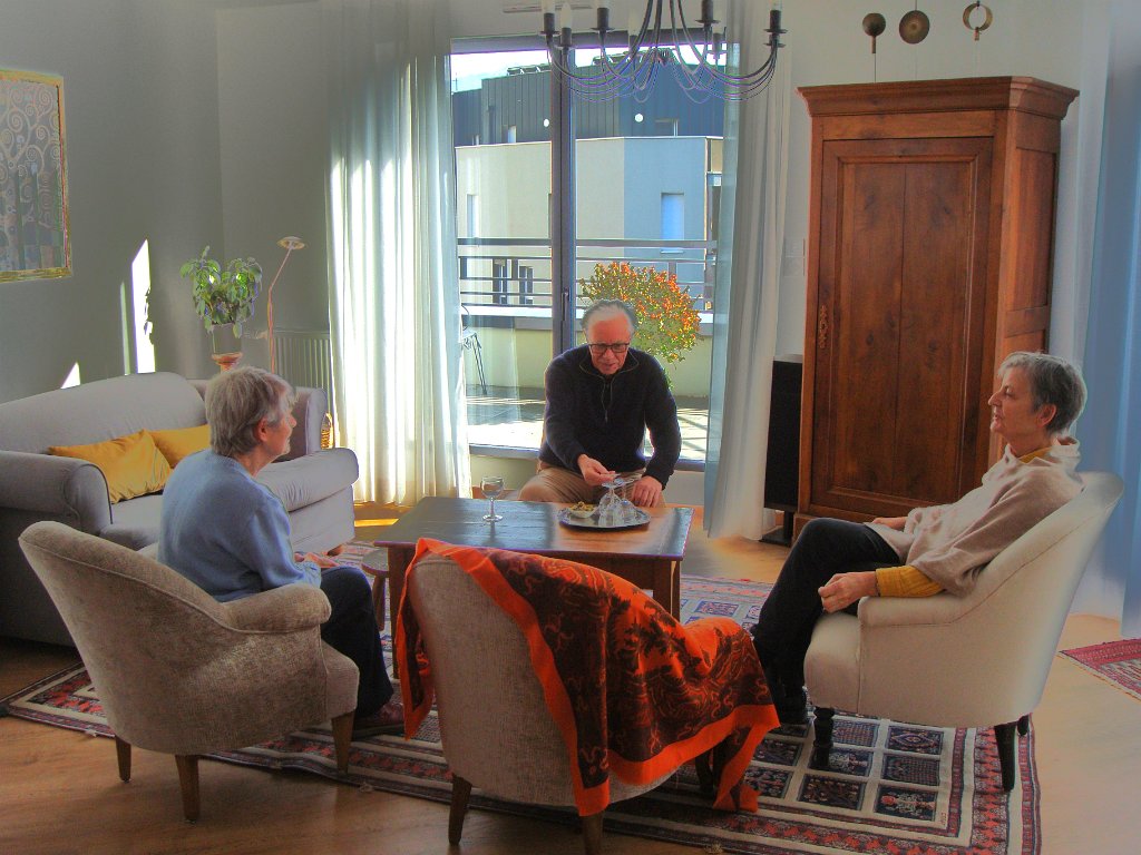 Chez les Rivron, dans le nouvel appartement ...... à Chambéry.Le balcon fait presque tout le tour ...... offrant une vue panoramique.L'intérieur est déjà bien aménagé.La table est mise pour nous quatre.Mais avant ...... c'est l'apéro !Au sommet de l'immeuble ... Labels