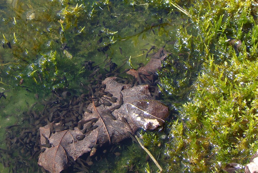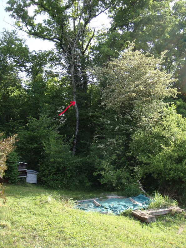 Pas encore concernés par le changement de saison !Plein de têtards ...... et même quelques champignons.Moins sympathique ...... cette grande vipère.En fait retrouvée morte le lendemain.Après la pluie, enfin le beau temps ...... et un magnifique ciel bleu.Bon moment pour planter cette patate oubliée ...... et pour faire abattre cet arbre mort ... Labels