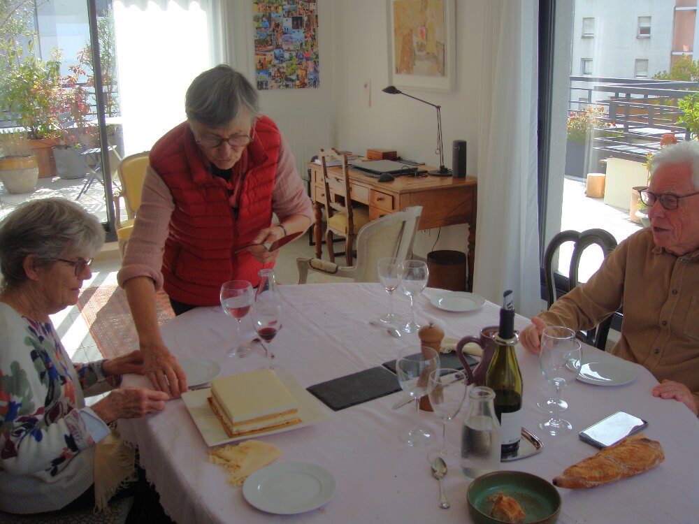 Après avoir cueilli notre fabuleuse récolte de potimarrons ...... nous allons à Chambéry, rue de l'Iseran.Le balcon s'est enrichi de quelques plantes, auxquelles Jean-Paul a fourni un arrosage automatique ...... et qu'admirent Anne et Martine.Curieuse, cette fleur.Pour le dessert, un superbe gâteau du nouveau pâtissier de Groisy.Nous y ferons honneur, deux fois, sauf Jean-Paul, régime oblige, hélas ! Labels