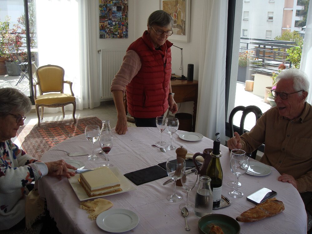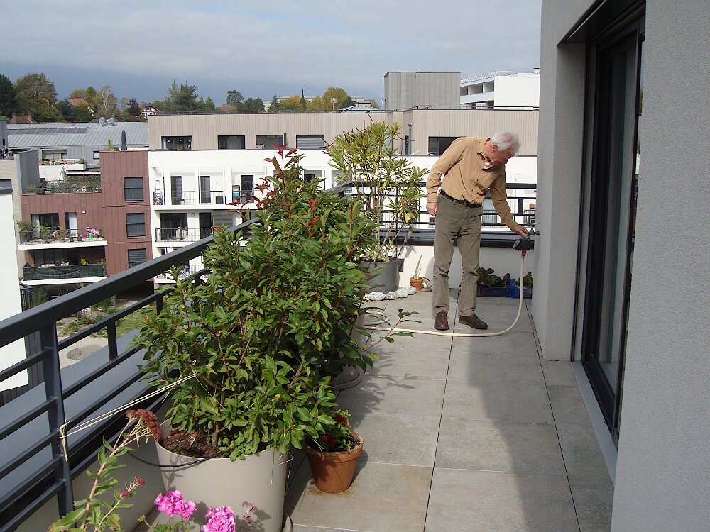 Après avoir cueilli notre fabuleuse récolte de potimarrons ...... nous allons à Chambéry, rue de l'Iseran.Le balcon s'est enrichi de quelques plantes, auxquelles Jean-Paul a fourni un arrosage automatique ...... et qu'admirent Anne et Martine.Curieuse, cette fleur.Pour le dessert, un superbe gâteau du nouveau pâtissier de Groisy.Nous y ferons honneur, deux fois, sauf Jean-Paul, régime oblige, hélas ! Labels